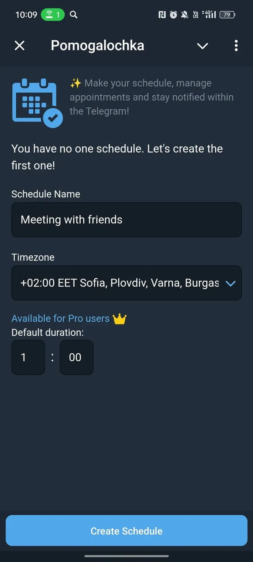 Pomogalochka упрощает планирование встреч и управление напоминаниями внутри Telegram: создавайте события, приглашайте участников и получайте уведомления прямо в чате.