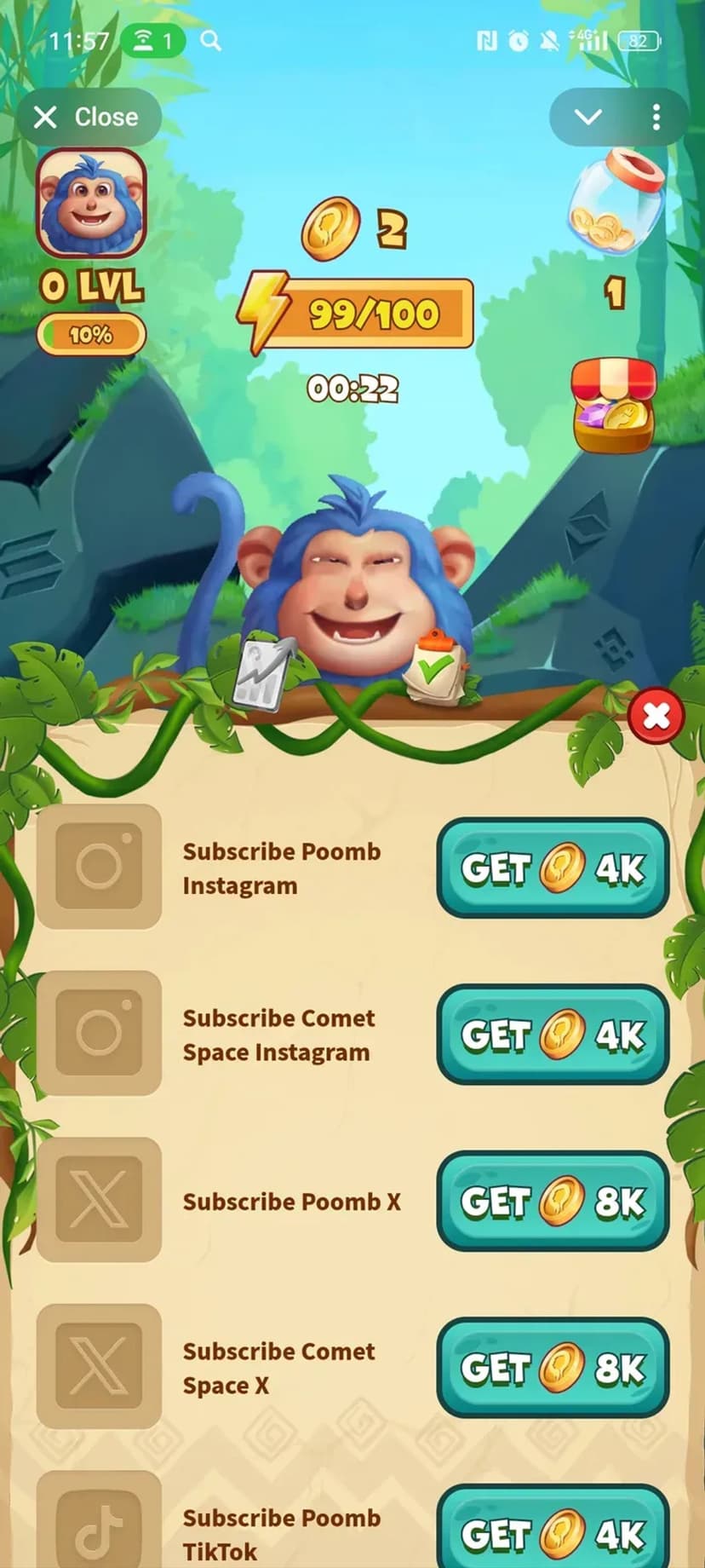 Poomb Space — мини‑приложение, сочетающее казуальный кликер и модель Play‑to‑Earn. Механика Tap‑to‑Earn 2.0 позволяет получать реальные криптовалютные вознаграждения: зарабатывайте токены $COGA, выполняя задания, участвуя в мини‑играх и приглашая друзей в экосистему Poomb Creatures.