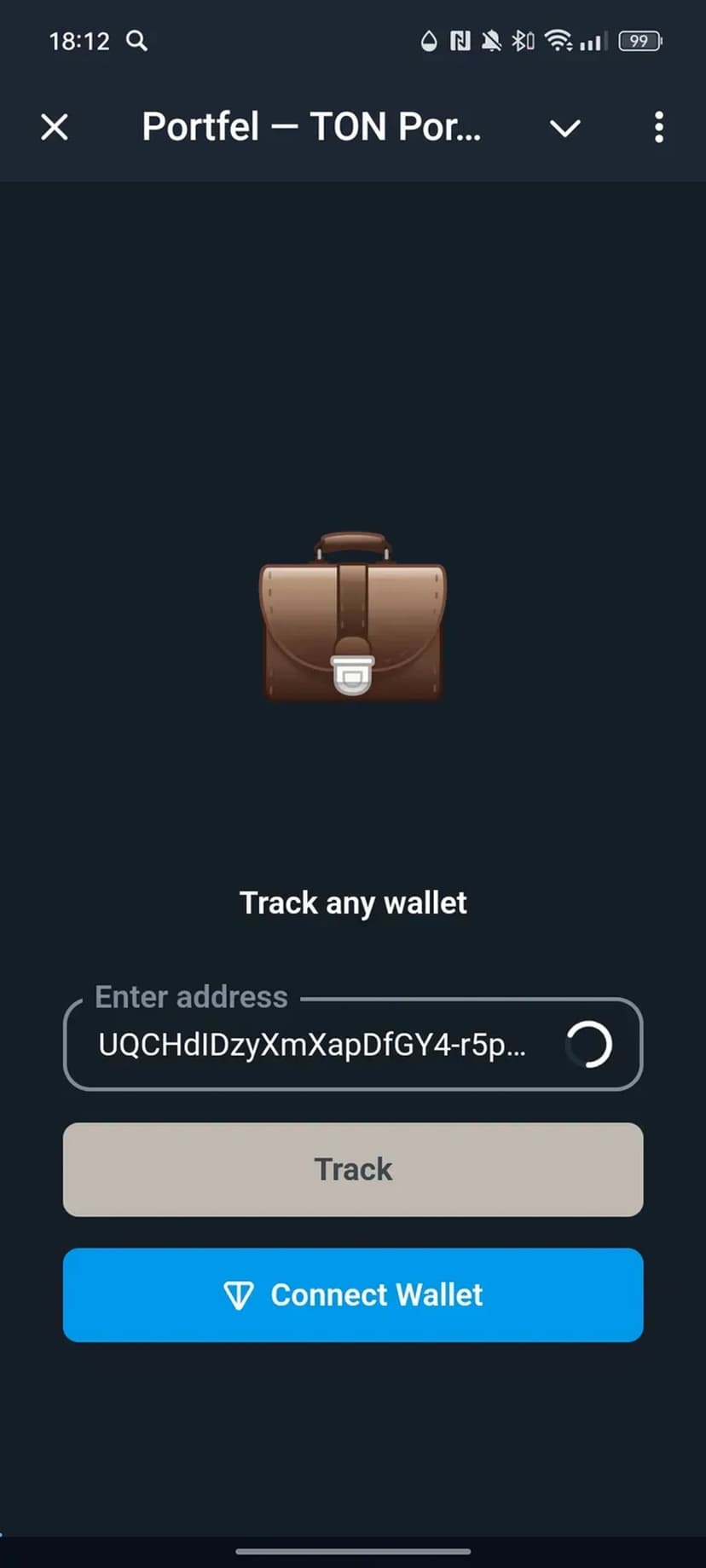Portfel — мини‑приложение в Telegram для сводного анализа криптопортфеля в экосистеме TON. Сервис автоматически собирает данные по подключённому адресу кошелька и отображает структуру активов, их стоимость и историю изменений общей стоимости портфеля в виде интерактивного графика.