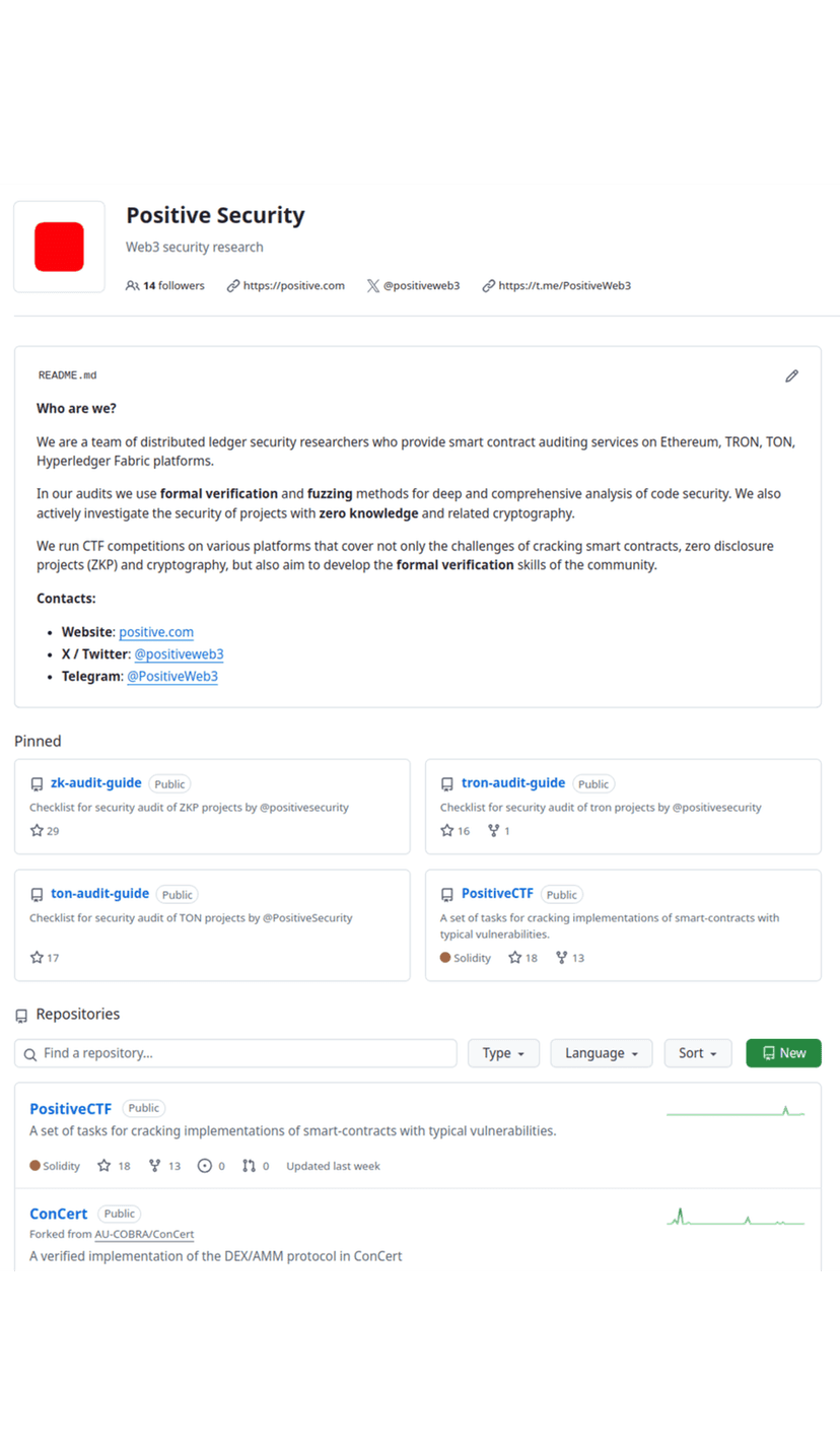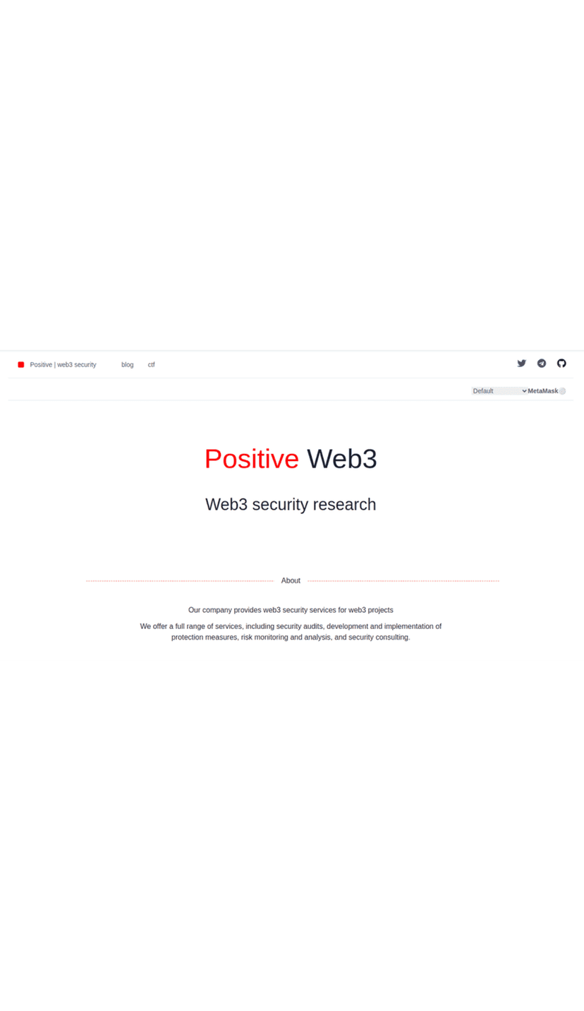 PositiveWeb3 — решение для аудита и обеспечения безопасности проектов в экосистеме Web3. Обеспечивает быстрый доступ к инструментам оценки рисков, анализу уязвимостей и консультациям по защите смарт‑контрактов и блокчейн‑приложений прямо в мессенджере.