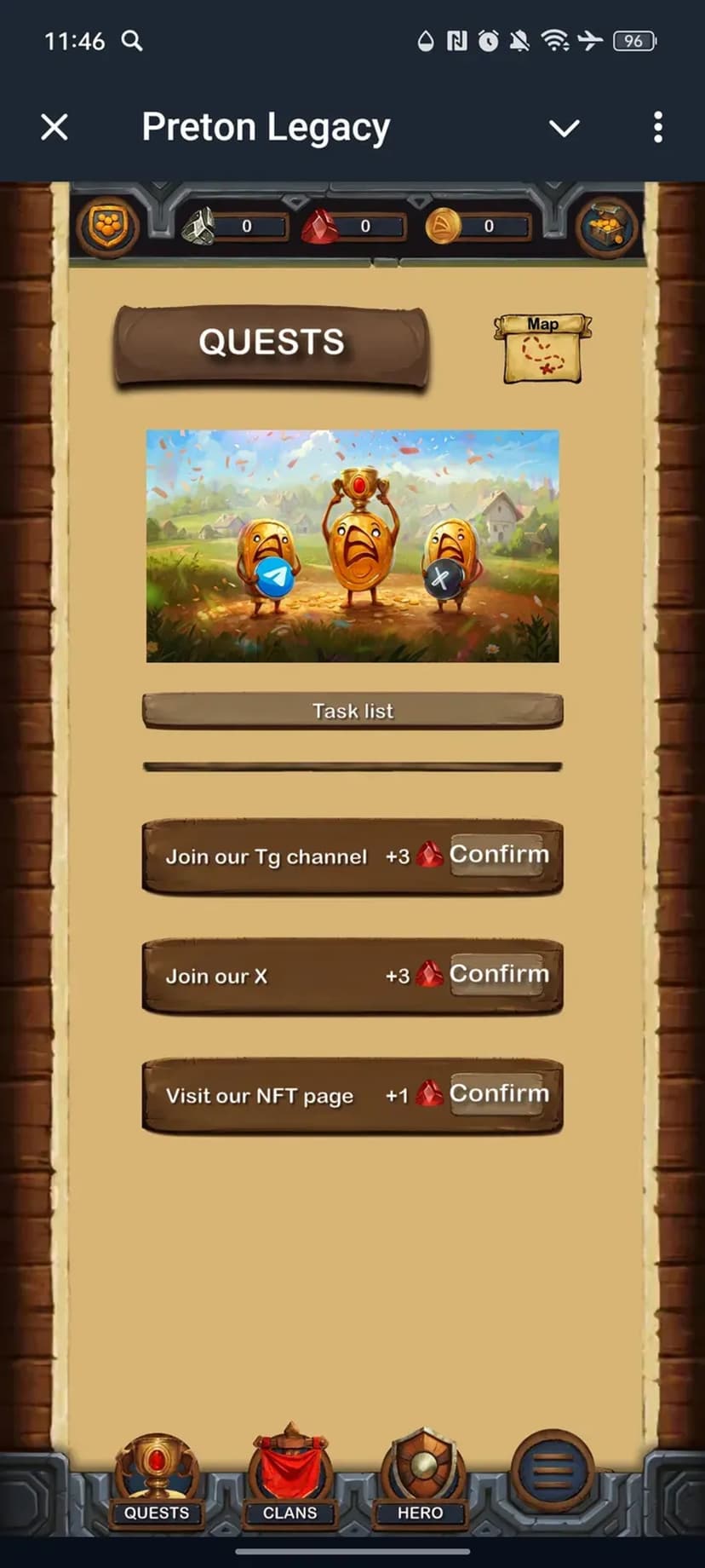 Preton Legacy — мини-игра, где вы выступаете искателем ресурсов и сокровищ в виртуальной вселенной. Основная механика строится на исследовании зон, сборе материалов и выполнении разнообразных заданий.