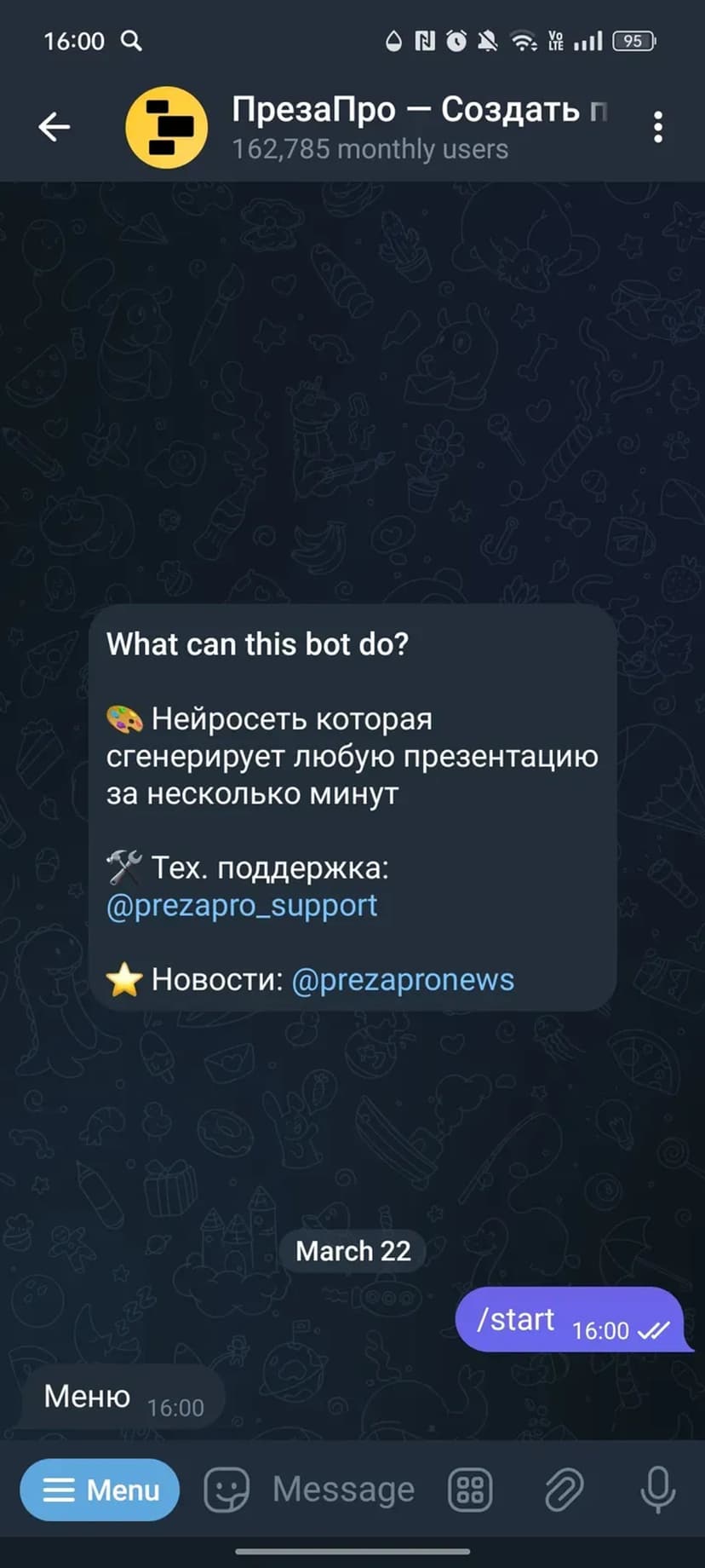 *Нажимая "Открыть в Telegram", вы перейдете к приложению ПрезаПро — Создать презентацию в мессенджере Telegram