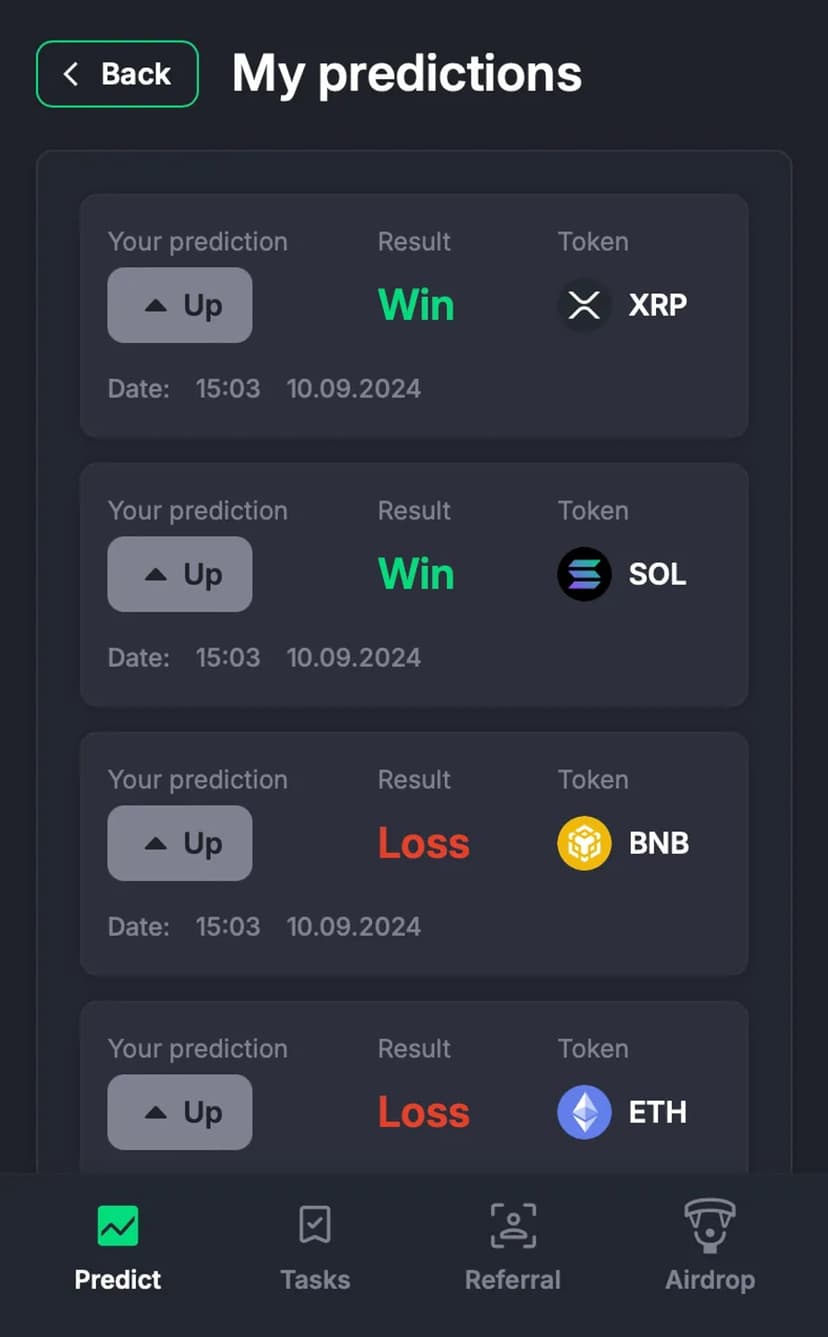 - Быстрые игры по прогнозированию роста или падения стоимости токенов.