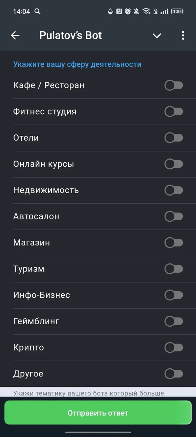 *Нажимая "Открыть в Telegram", вы перейдете к приложению Pulatov’s Bot в мессенджере Telegram