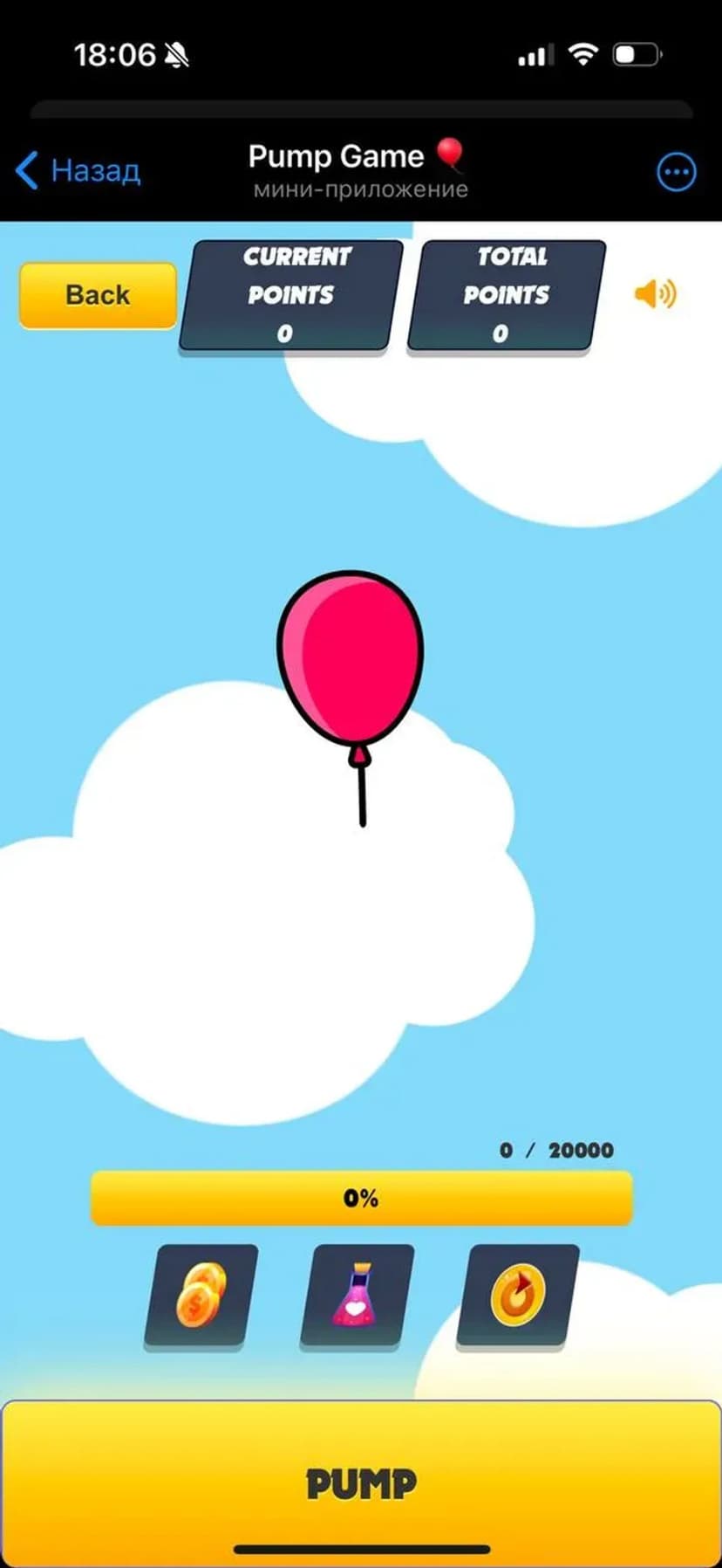 Pump Game π β ΠΏΡΠΎΡΡΠ°Ρ ΠΈ Π΄ΠΈΠ½Π°ΠΌΠΈΡΠ½Π°Ρ ΠΊΠ°Π·ΡΠ°Π»ΡΠ½Π°Ρ ΠΈΠ³ΡΠ° Π² Telegram, Π³Π΄Π΅ ΡΠ΅Π»Ρ ΠΎΠ΄Π½Π°: ΡΠ΄Π΅ΡΠΆΠΈΠ²Π°ΡΡ ΠΊΠ½ΠΎΠΏΠΊΡ Π½Π°ΡΠΎΡΠ°, ΡΡΠΎΠ±Ρ Π½Π°Π΄ΡΡΡ ΡΠ°ΡΠΈΠΊ ΠΈ ΡΠ²Π΅Π»ΠΈΡΠΈΡΡ ΠΈΠ³ΡΠΎΠ²ΠΎΠΉ Π±Π°Π»Π°Π½Ρ. ΠΠ³ΡΠ° Π½Π΅ ΡΡΠ΅Π±ΡΠ΅Ρ Π΄Π»ΠΈΡΠ΅Π»ΡΠ½ΠΎΠ³ΠΎ ΠΎΠ±ΡΡΠ΅Π½ΠΈΡ ΠΈ ΠΏΠΎΠ΄Ρ ΠΎΠ΄ΠΈΡ Π΄Π»Ρ ΠΊΠΎΡΠΎΡΠΊΠΈΡ ΠΏΠ΅ΡΠ΅ΡΡΠ²ΠΎΠ².