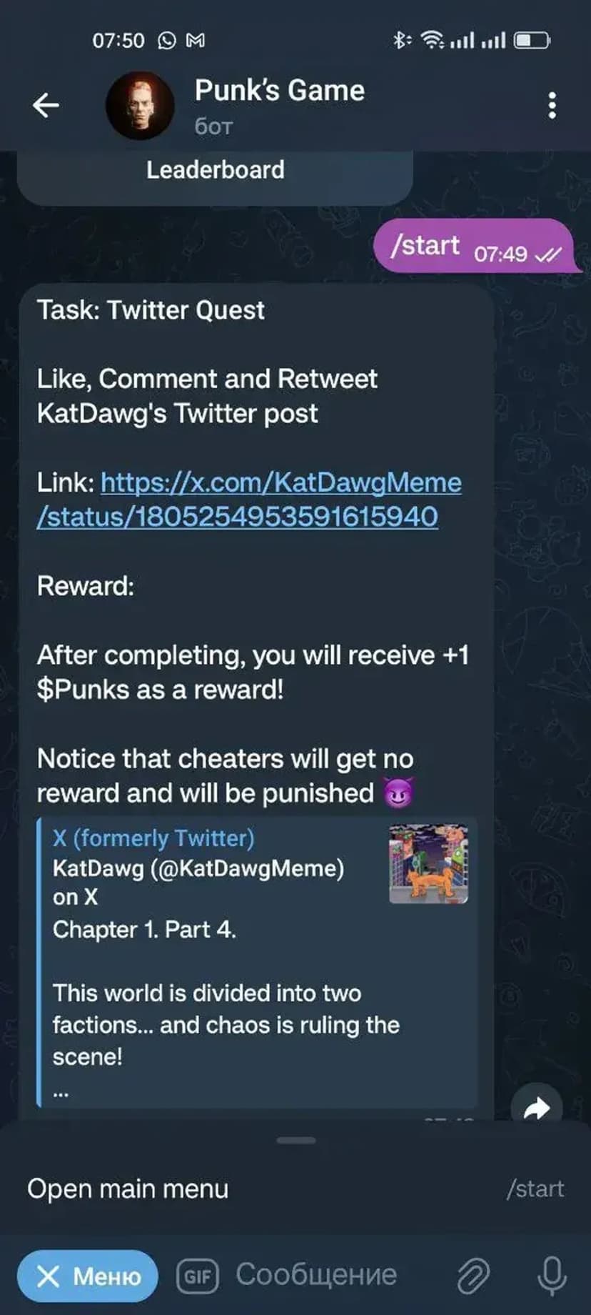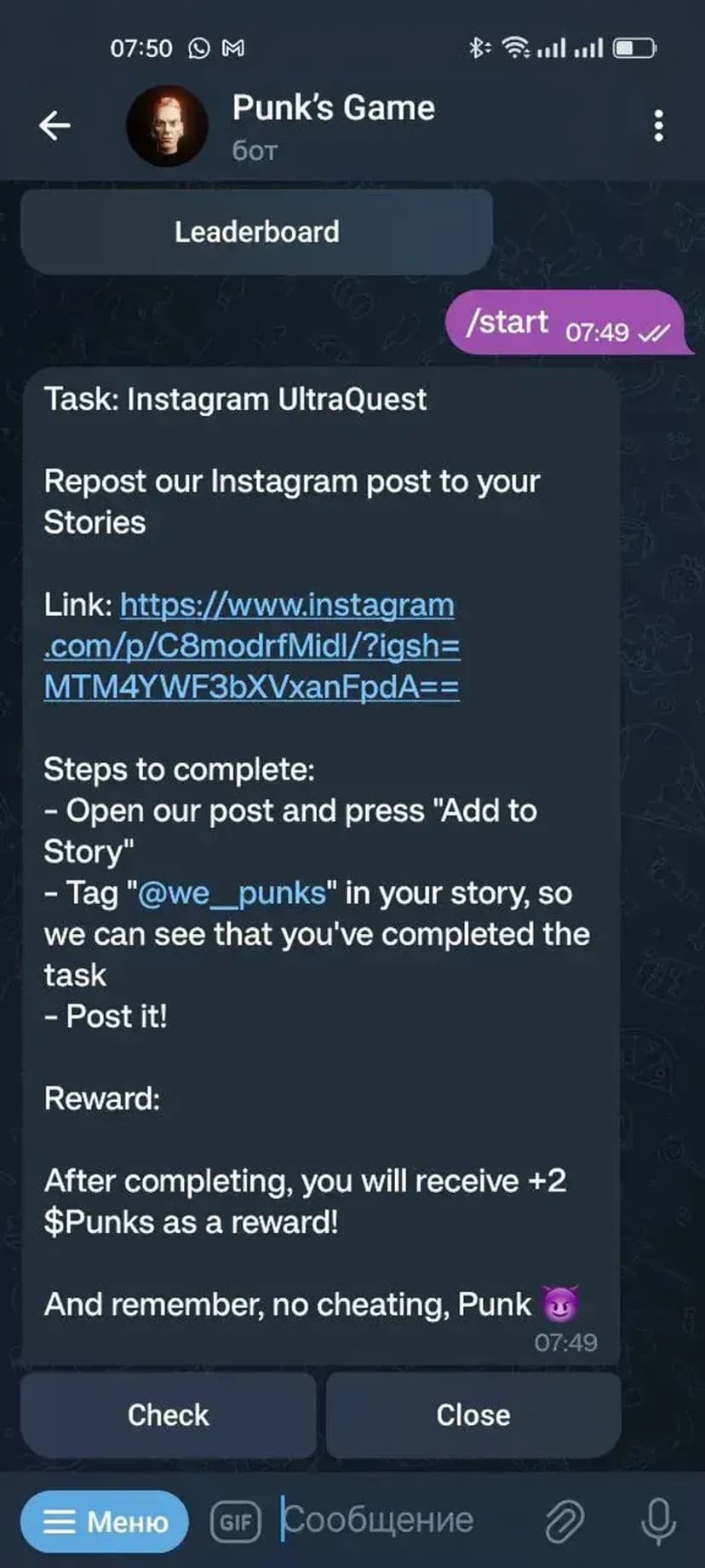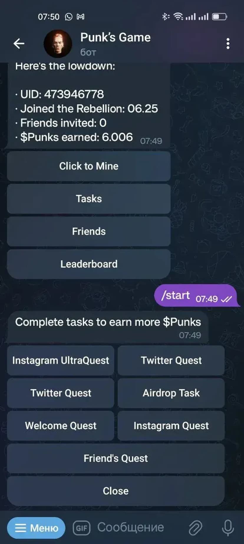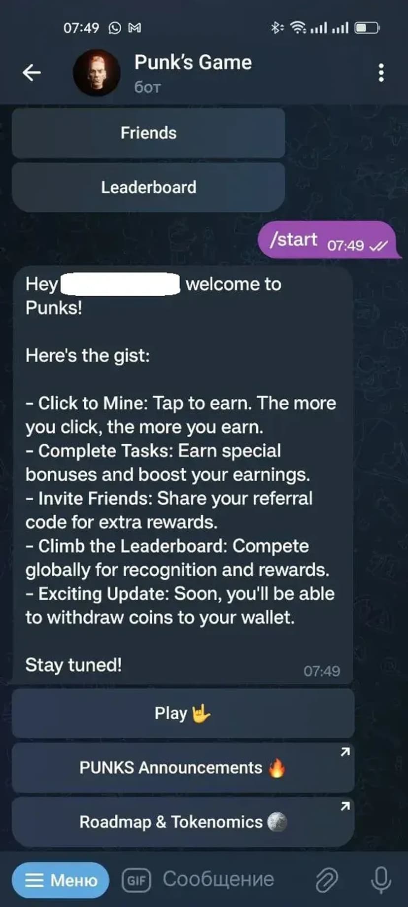 *Нажимая "Открыть в Telegram", вы перейдете к приложению PUNKS в мессенджере Telegram