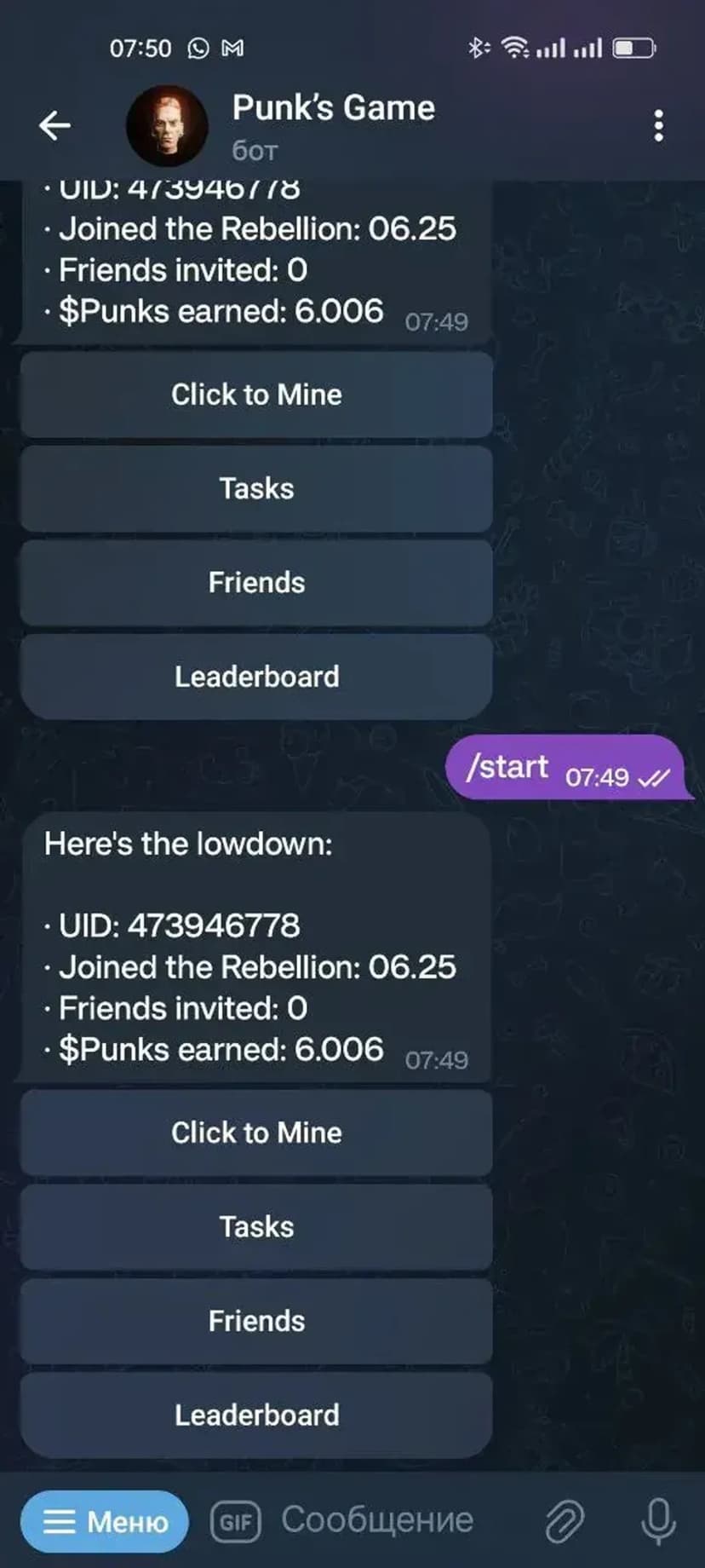 PUNKS — мини‑приложение в Telegram, совмещающее механику кликера с элементами виртуального майнинга и социальной активности. Проект ориентирован на пользователей, которые хотят зарабатывать виртуальные монеты через игровой процесс и мериться результатами с другими.