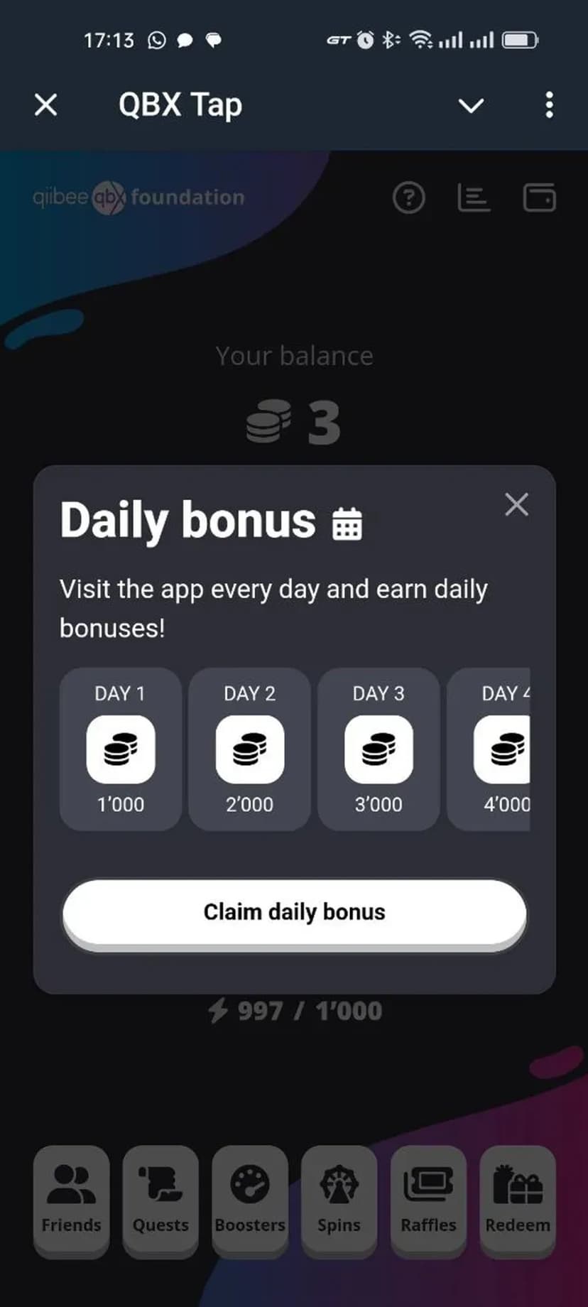 QBX Tap реализует концепцию Web3‑лояльности на базе блокчейна TON: пользователи зарабатывают баллы за ежедневные нажатия на кнопку, выполнение квестов, приглашения друзей и активацию бустеров. Баланс обновляется в реальном времени, а накопленные баллы можно обменять на различные награды — от криптовалюты и токенов QBX до подарочных карт и денежных призов.