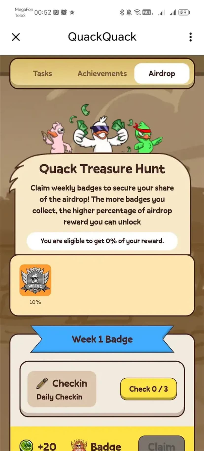QuackQuack — экономическая игра с элементами пассивного заработка, коллекционирования и внутриигровых наград. Пользователи выращивают уток, приобретают гнёзда, собирают яйца и участвуют в аирдропах, получая внутриигровую валюту или токены.