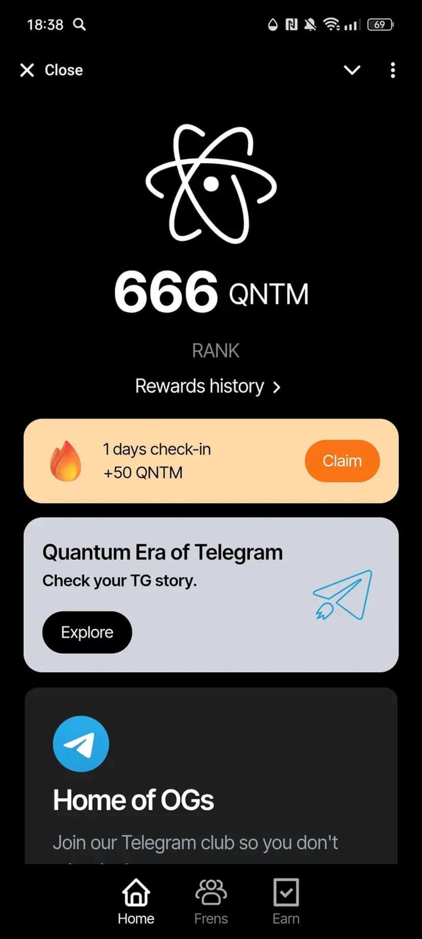 Зарабатывайте QNTM за активность в Telegram — задания, достижения и рейтинги.