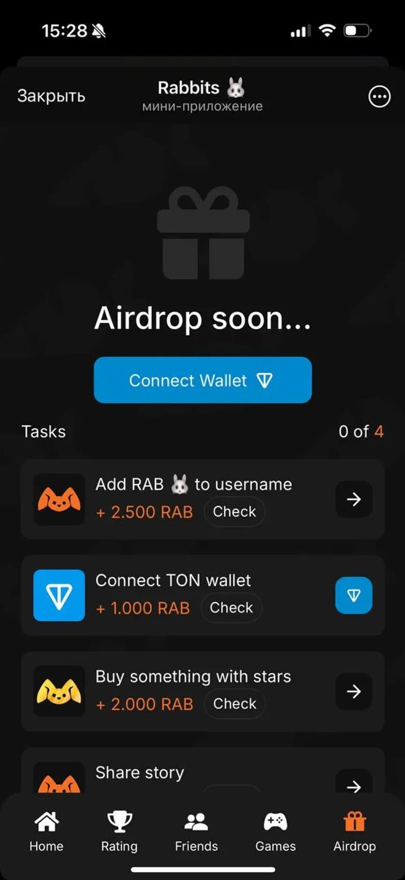 *ΠΠ°ΠΆΠΈΠΌΠ°Ρ "ΠΡΠΊΡΡΡΡ Π² Telegram", Π²Ρ ΠΏΠ΅ΡΠ΅ΠΉΠ΄Π΅ΡΠ΅ ΠΊ ΠΏΡΠΈΠ»ΠΎΠΆΠ΅Π½ΠΈΡ Rabbits π° Π² ΠΌΠ΅ΡΡΠ΅Π½Π΄ΠΆΠ΅ΡΠ΅ Telegram