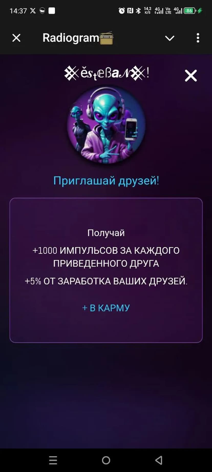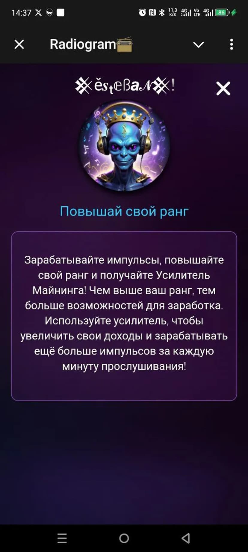 *Нажимая "Открыть в Telegram", вы перейдете к приложению Radiogram — Listen & Earn! в мессенджере Telegram