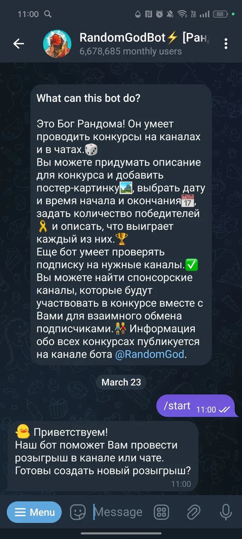 *Нажимая "Открыть в Telegram", вы перейдете к приложению RandomGodBot в мессенджере Telegram