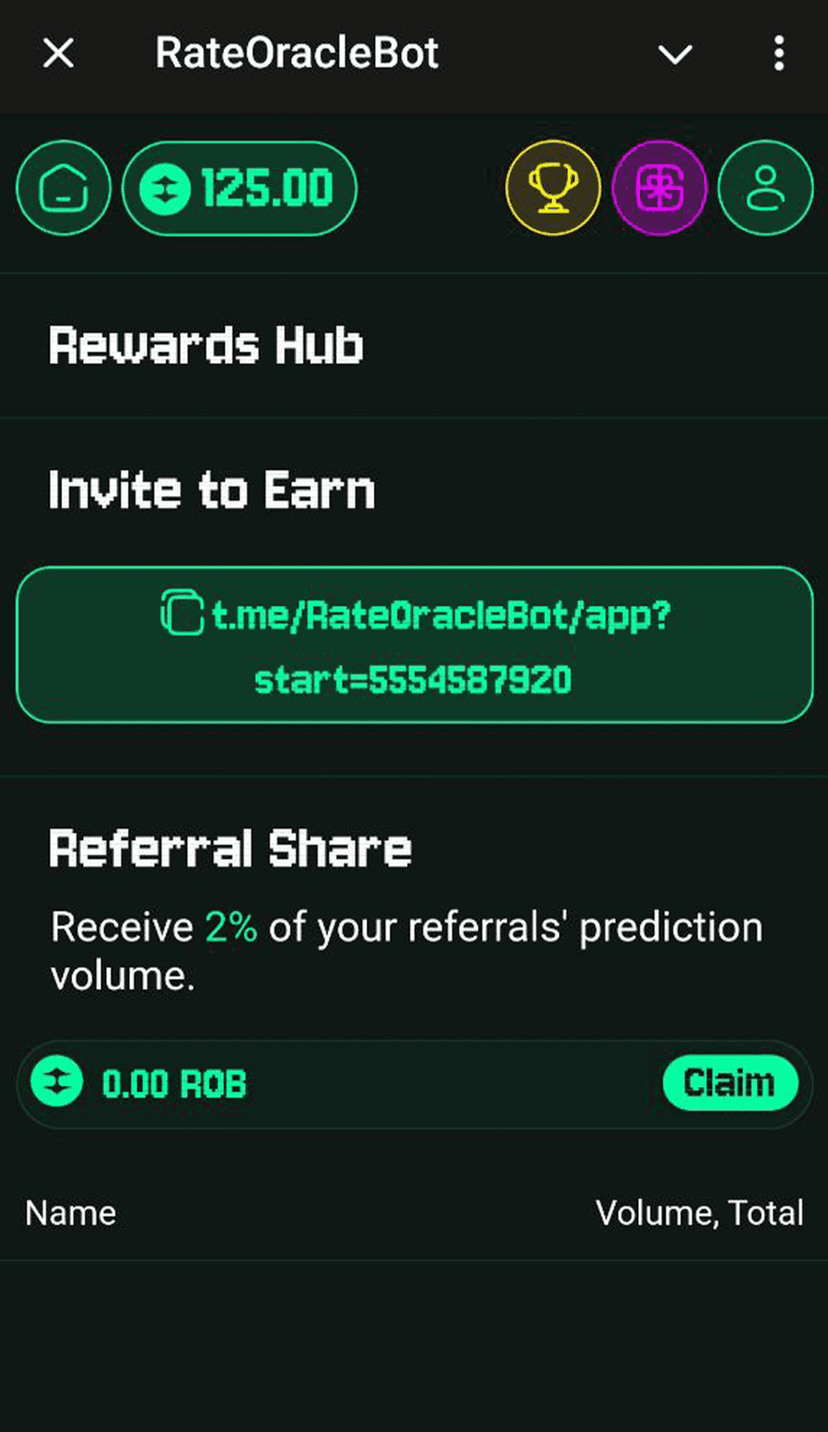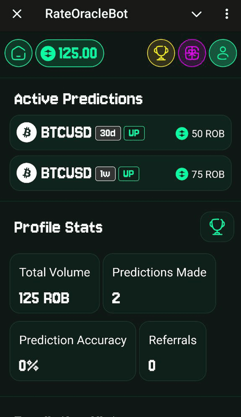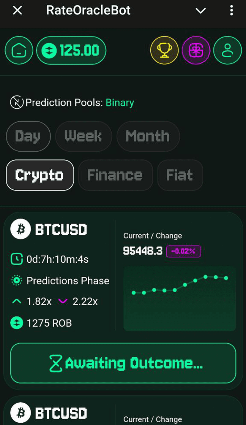 RateOracleBot предоставляет возможность прогнозировать изменение цен на криптовалюты, акции и национальные валюты, делая ставки с использованием токена ROB jetton и получая вознаграждения при успешных прогнозах.