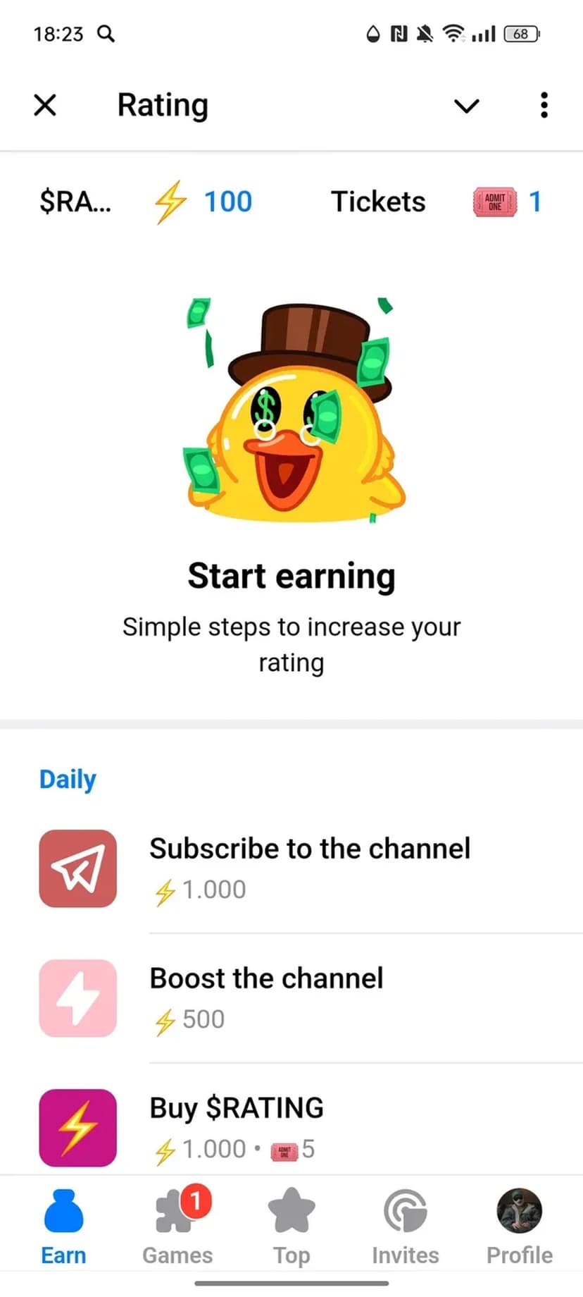 - Вознаграждения: накопленные очки влияют на место в общем рейтинге и увеличивают шанс получения токенов $RATING.