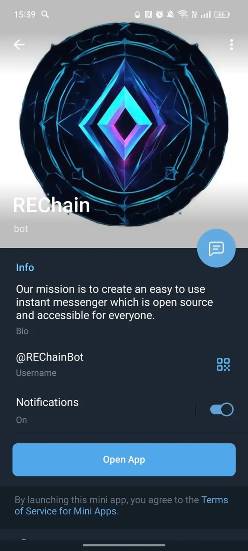 REChain — мини‑программа в Telegram, ориентированная на безопасный и доступный обмен данными. Проект с открытым исходным кодом обеспечивает шифрование переписки и удобный интерфейс для мобильных и десктопных клиентов.