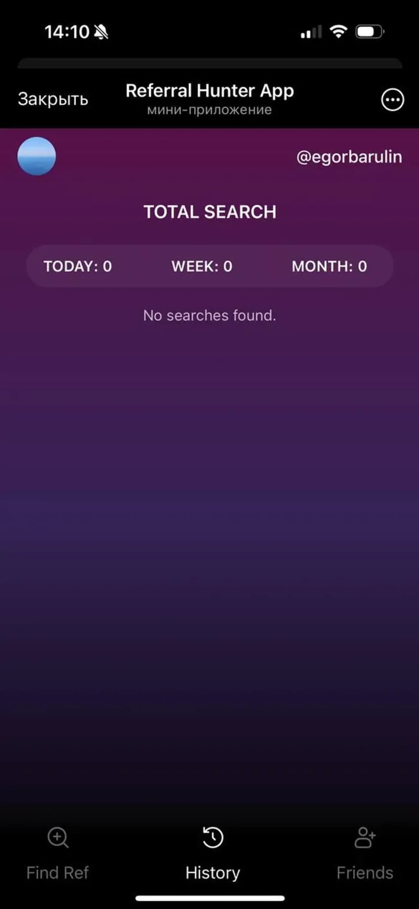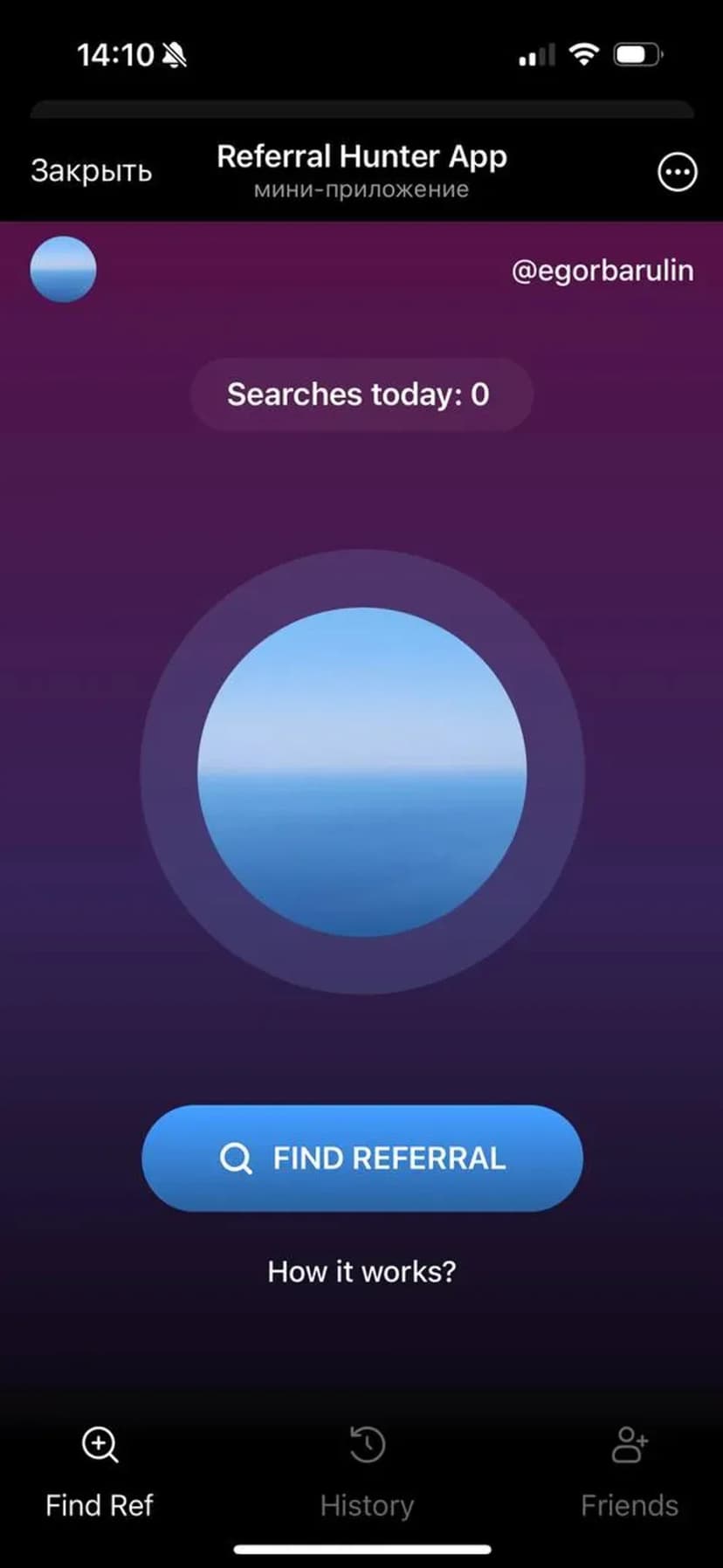 Referral Hunter App — сервис через Telegram-бота для поиска и обмена реферальных ссылок в категориях вроде airdrop и tap-to-earn. Приложение интегрируется с Telegram-аккаунтом без необходимости отдельной установки и позволяет быстро находить и публиковать предложения.