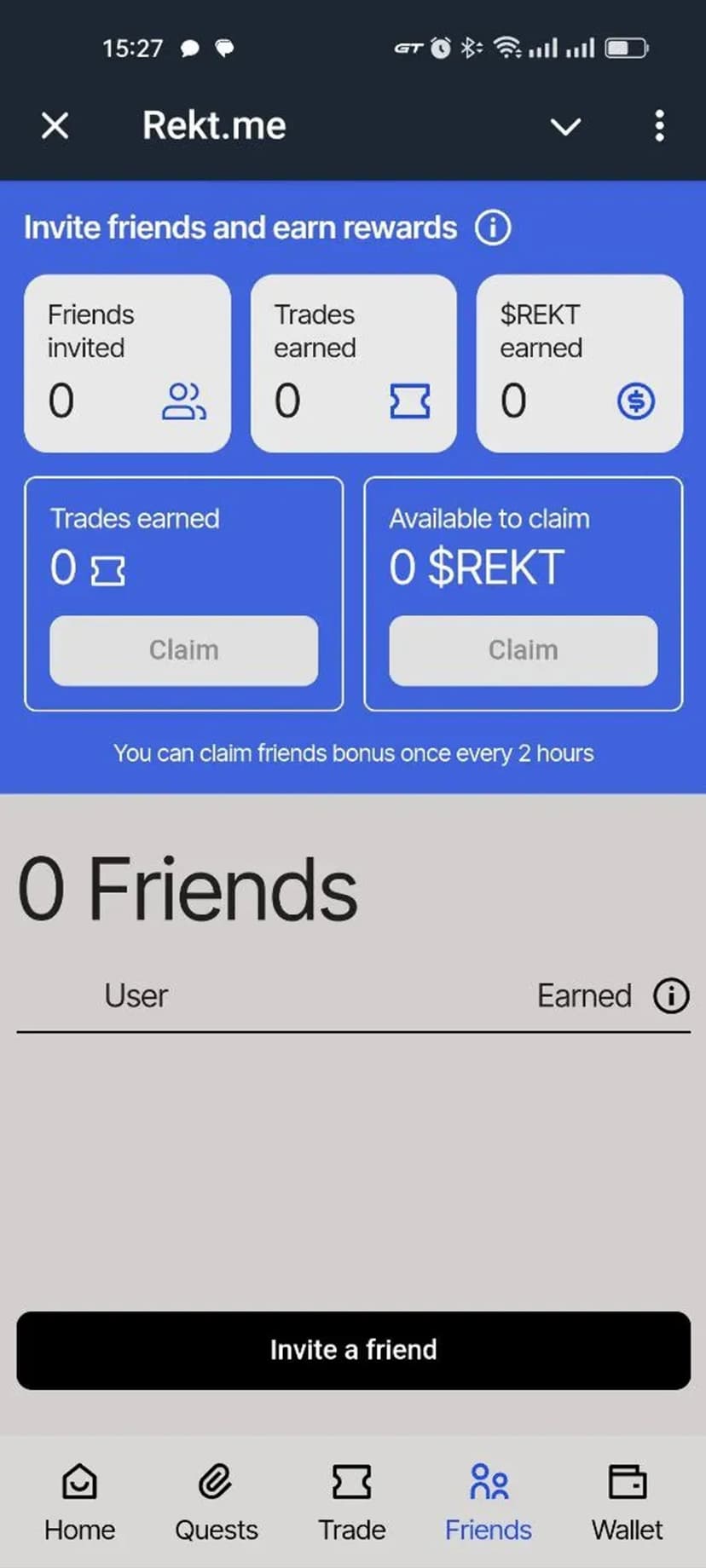 - Реферальная программа — дополнительные $REKT‑очки за приглашённых пользователей.