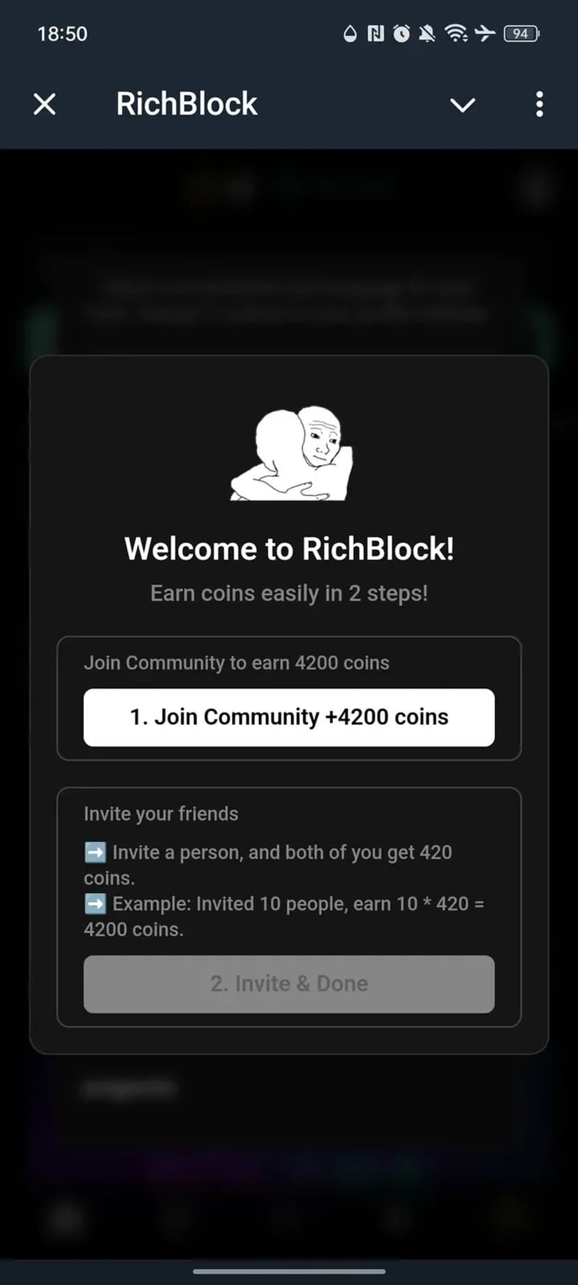 *Нажимая "Открыть в Telegram", вы перейдете к приложению RichBlock в мессенджере Telegram