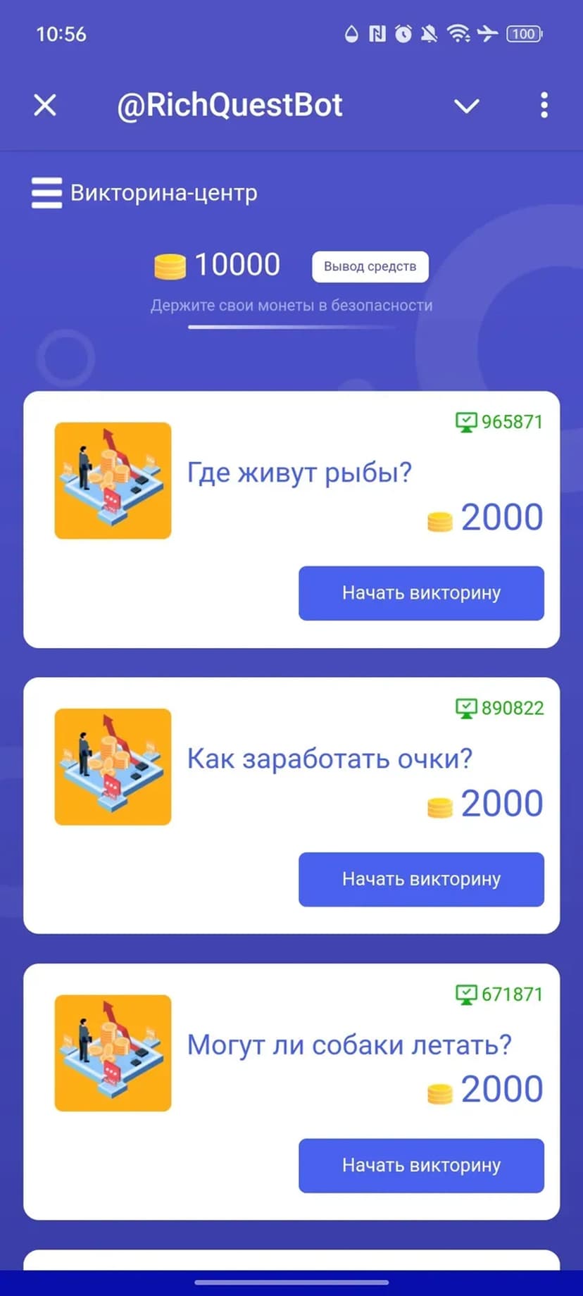 - Финансовые викторины и социальные задания