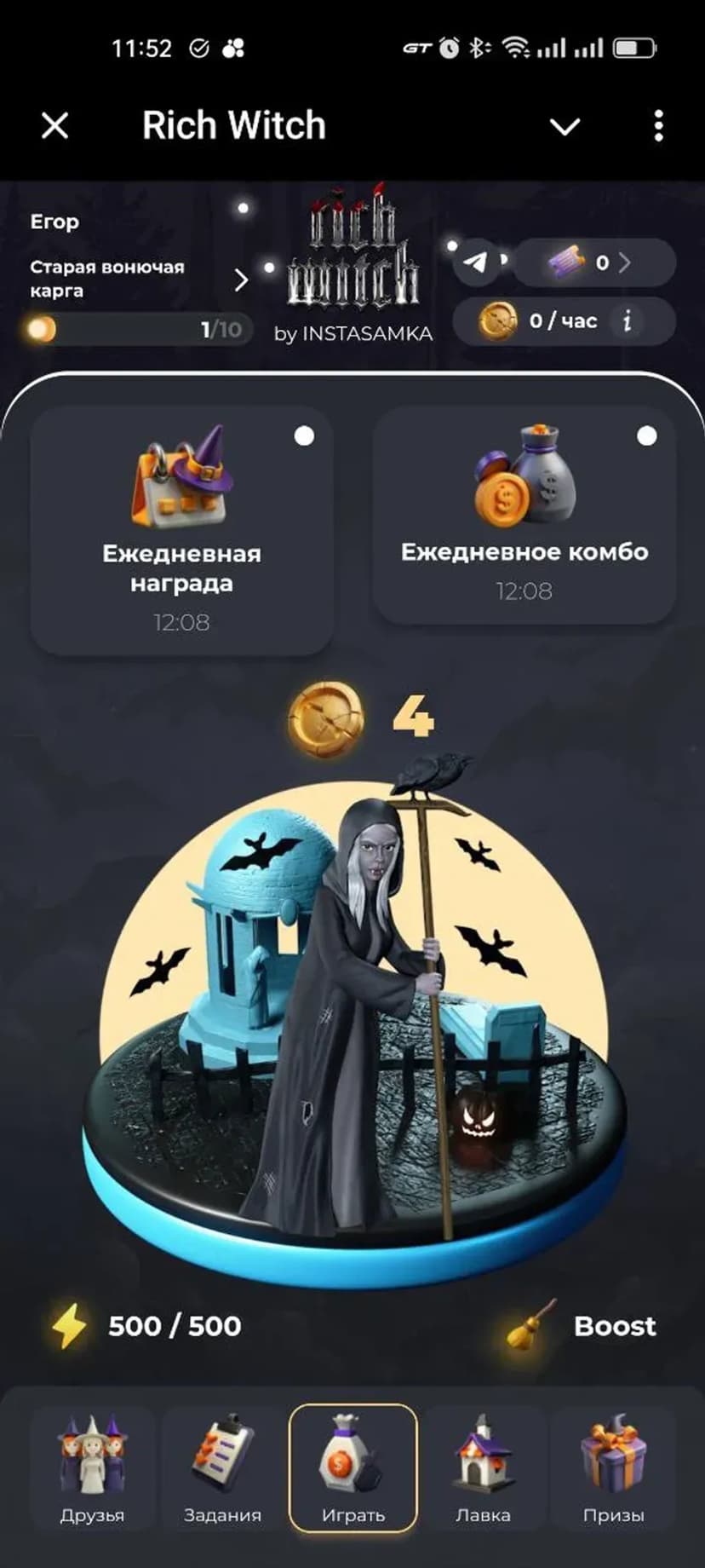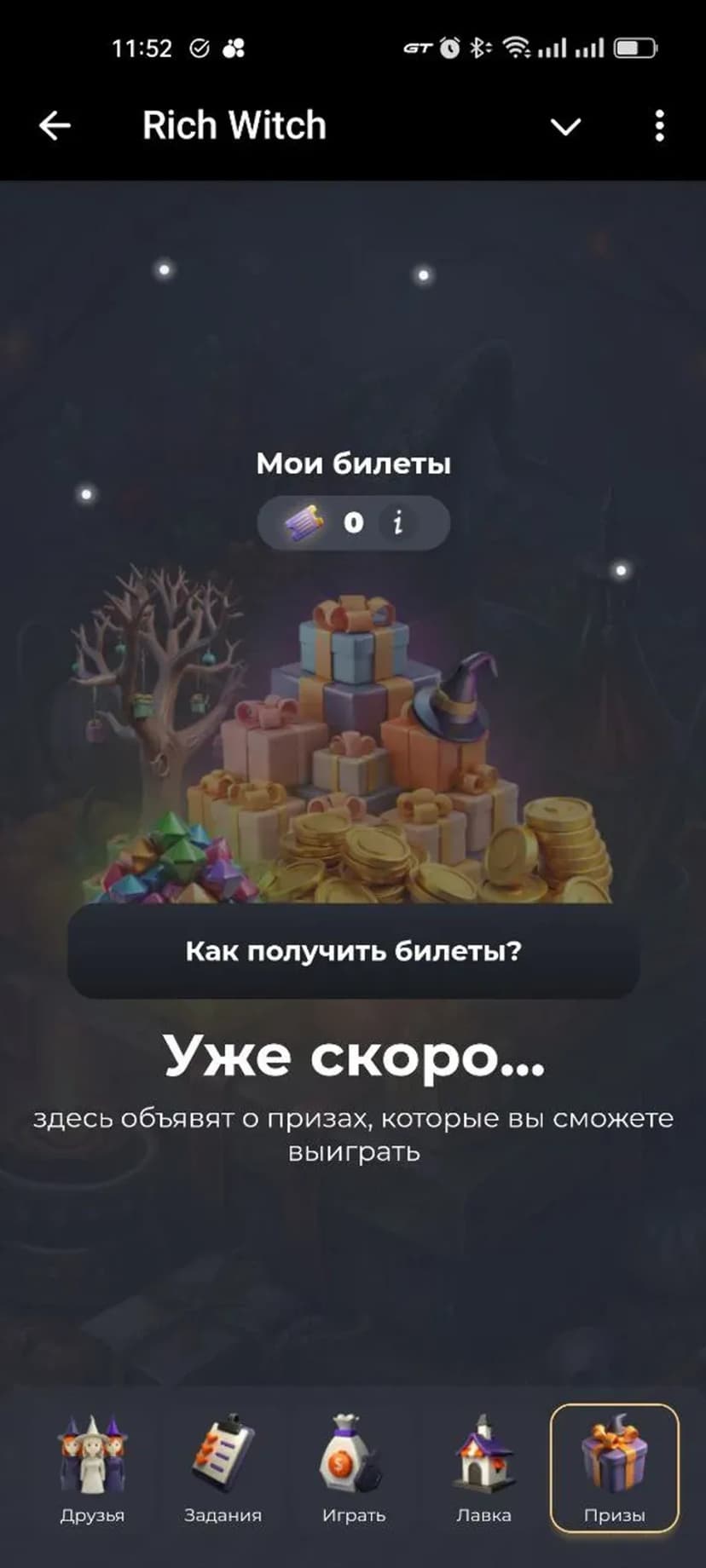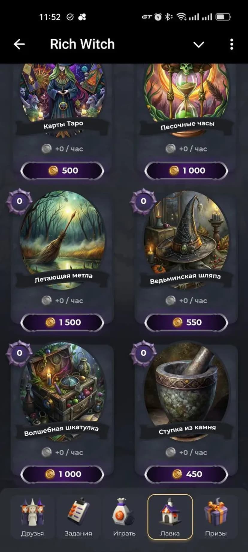 Rich Witch — кликер с элементами коллекционирования, где основная механика построена на сборе монет через тап‑взаимодействия и выполнении заданий для получения дополнительных наград. Валюту можно тратить в магазине на уникальные коллекционные карты, а приглашения друзей усиливают командный прогресс и приносят бонусы.