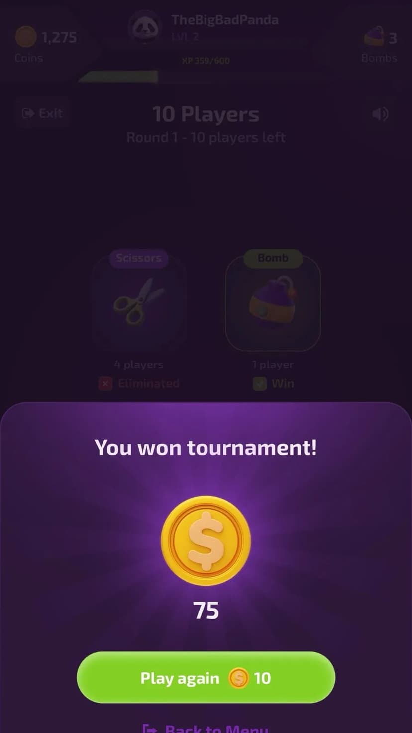 Быстрые PvP-турниры: камень, ножницы, бумага и бомба с рейтингом и призами