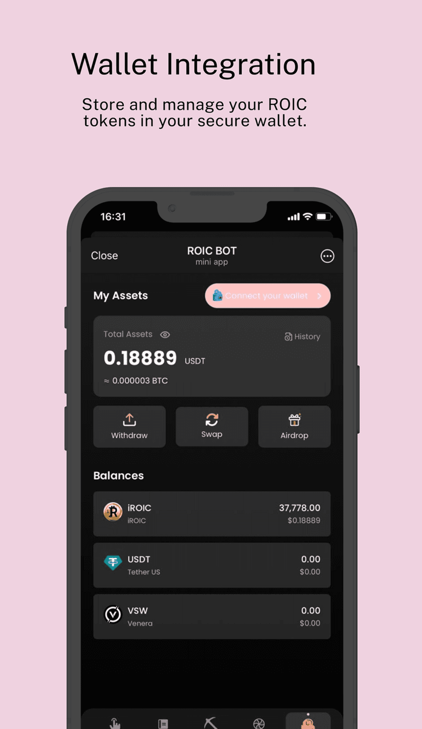 ROIC BOT предлагает простой способ заработка ROIC-токенов за выполнение интерактивных заданий: тапов, просмотра видео, приглашения новых участников и участия в сообществе.