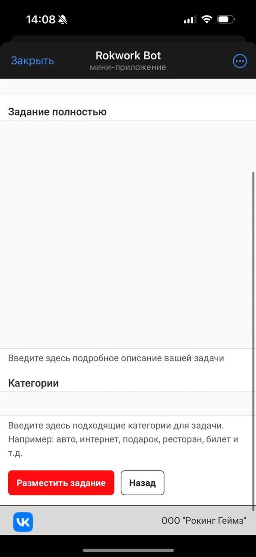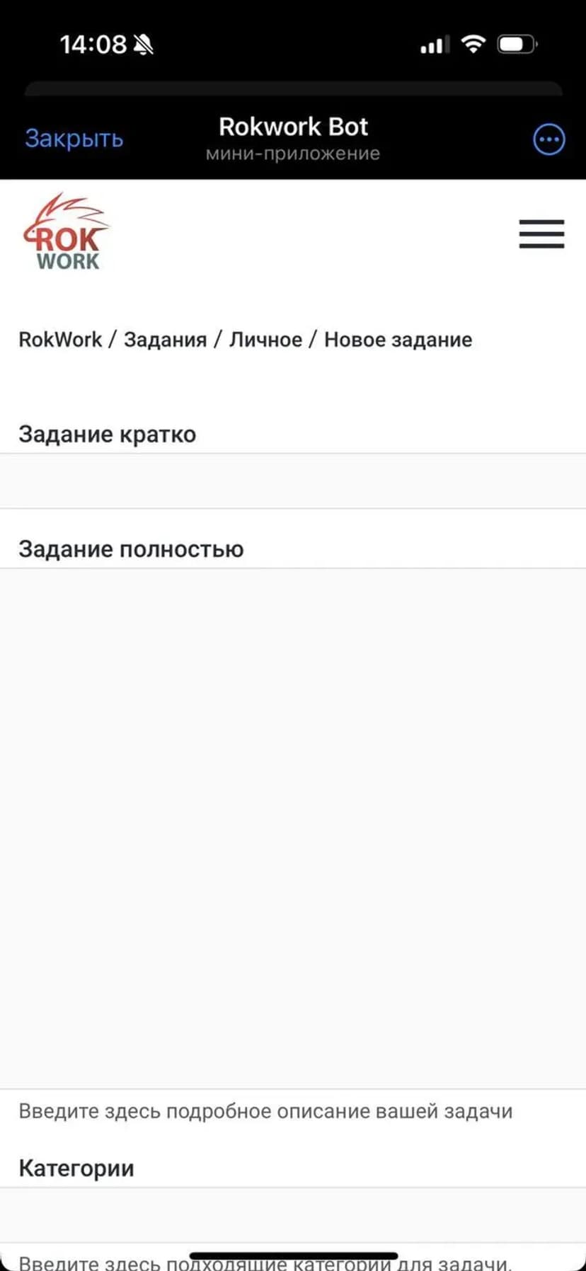 *Нажимая "Открыть в Telegram", вы перейдете к приложению Rokwork Bot в мессенджере Telegram
