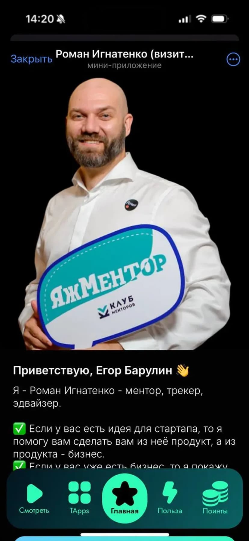 *Нажимая "Открыть в Telegram", вы перейдете к приложению Роман Игнатенко (визитка) в мессенджере Telegram