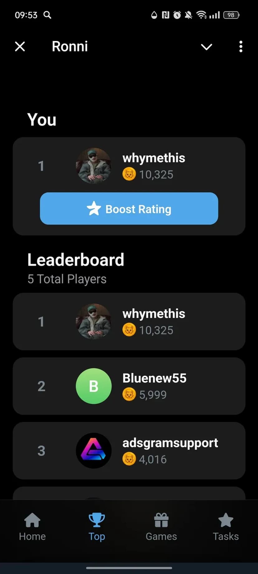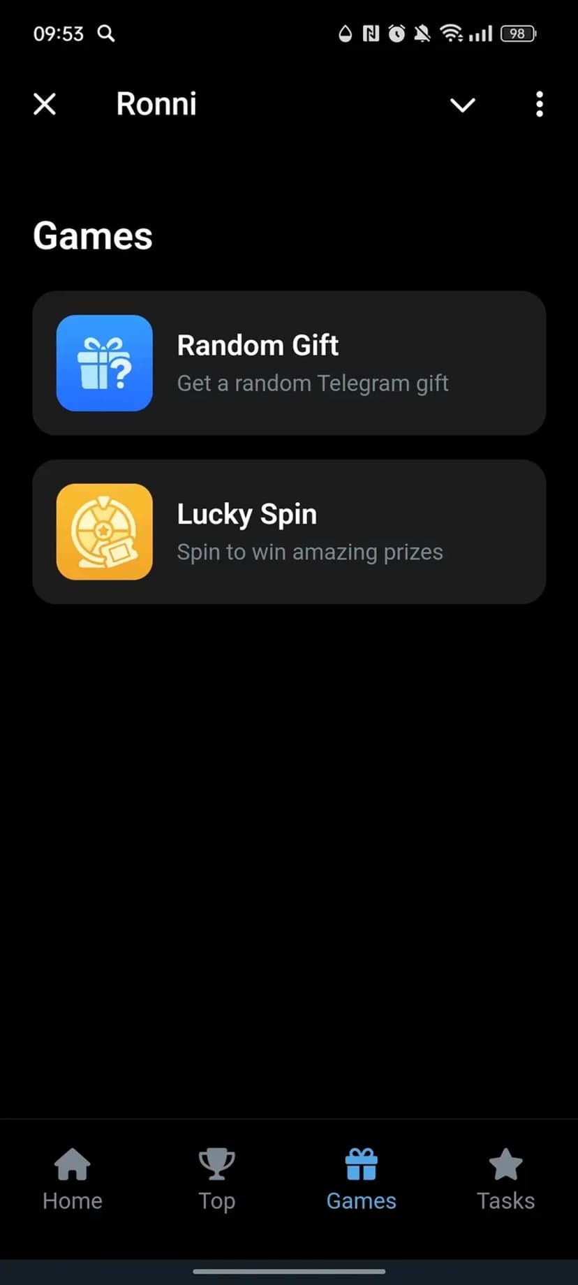 Ronni — интегрированное в Telegram мини-приложение для заработка криптовалюты $RONNI через выполнение заданий и челленджей.