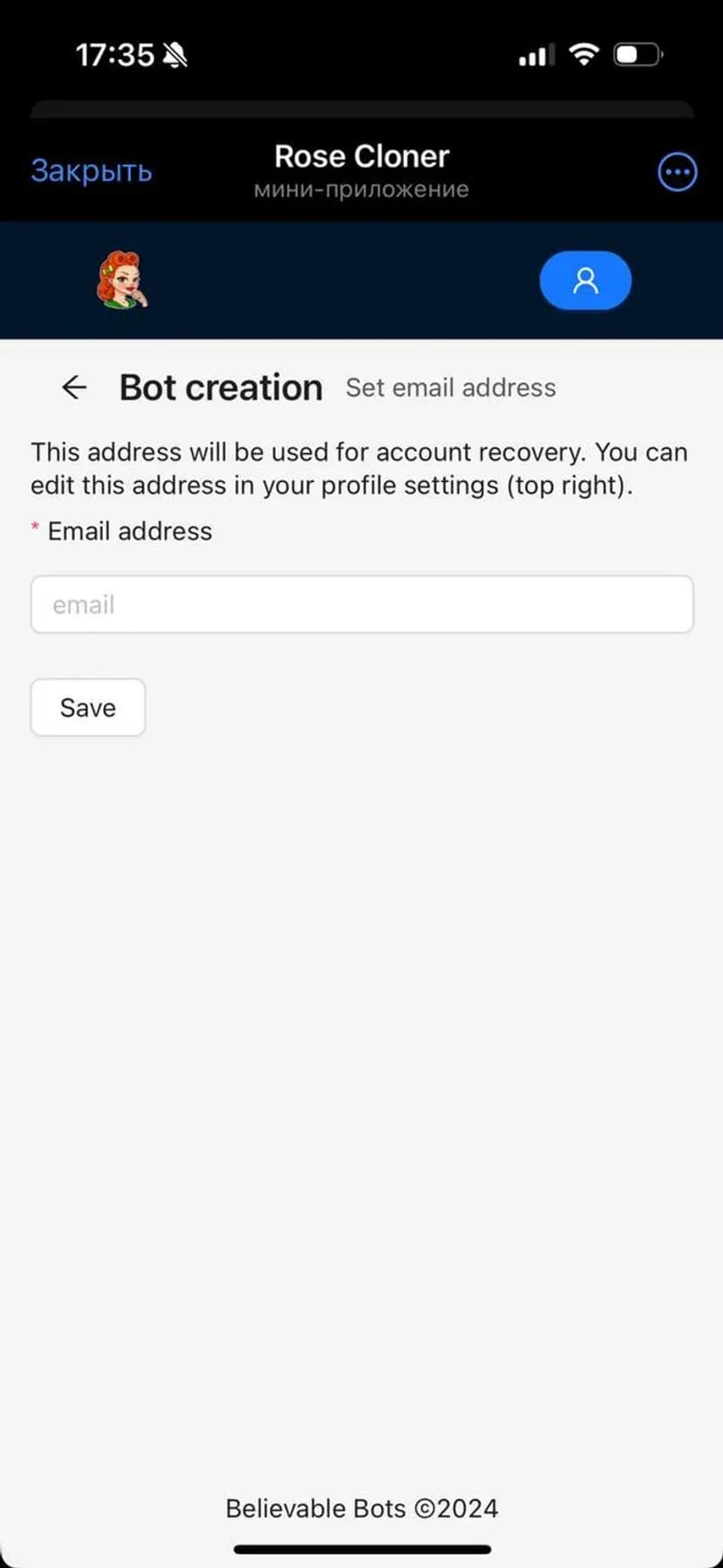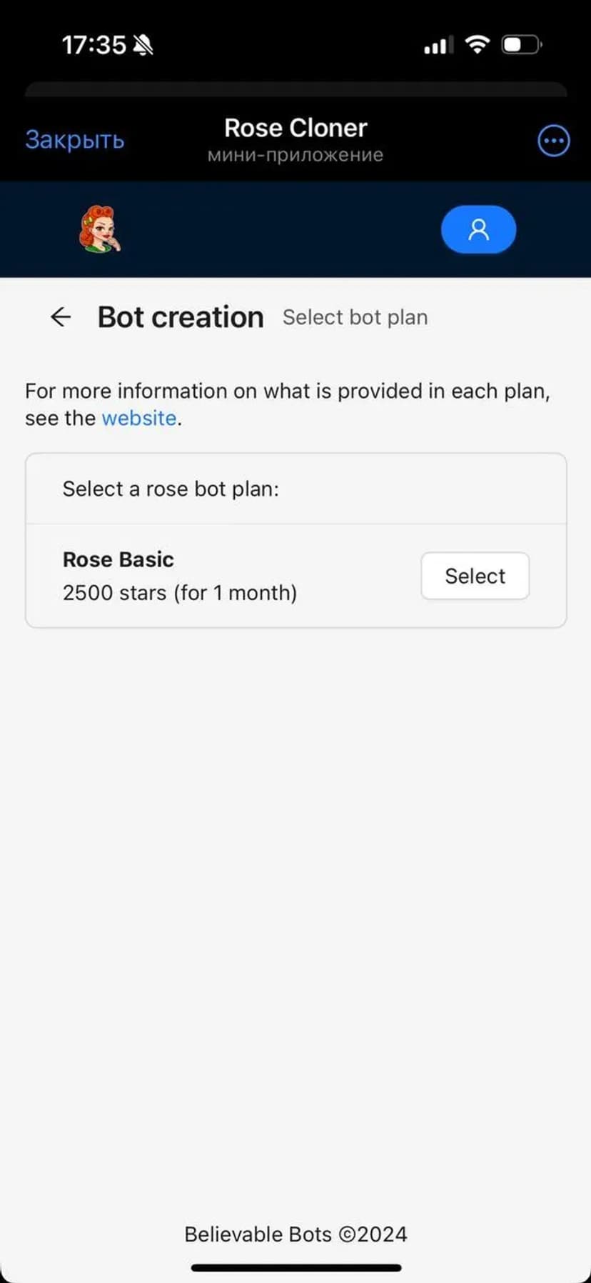 *Нажимая "Открыть в Telegram", вы перейдете к приложению Rose Cloner в мессенджере Telegram