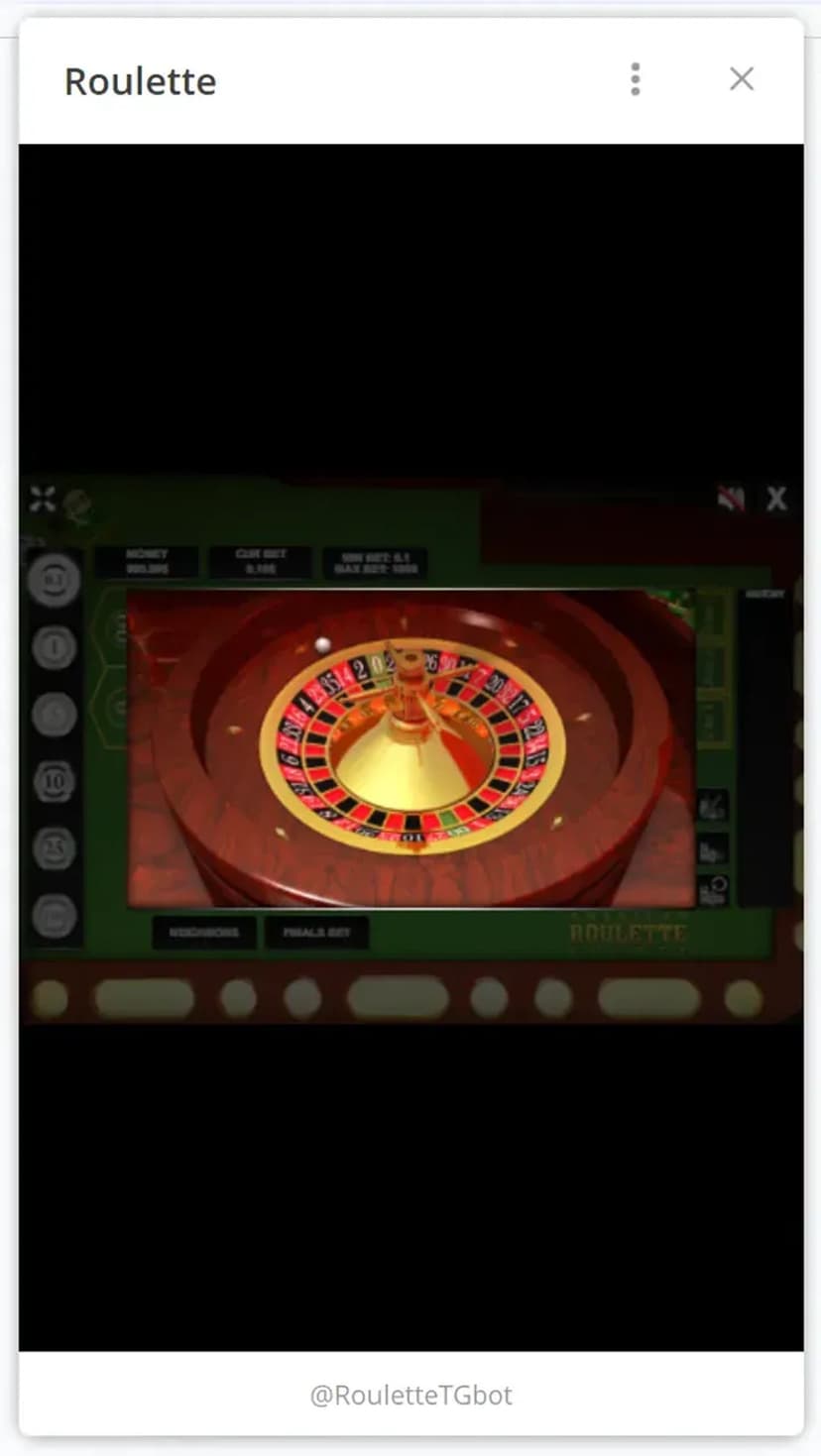 Roulette — цифровая версия классической рулетки внутри Telegram. Ставки можно делать на красное, чёрное, конкретные числа или диапазоны; исход определяется случайностью и повторяет традиционные правила игры. Игра полностью бесплатна и не связана с реальными денежными ставками.