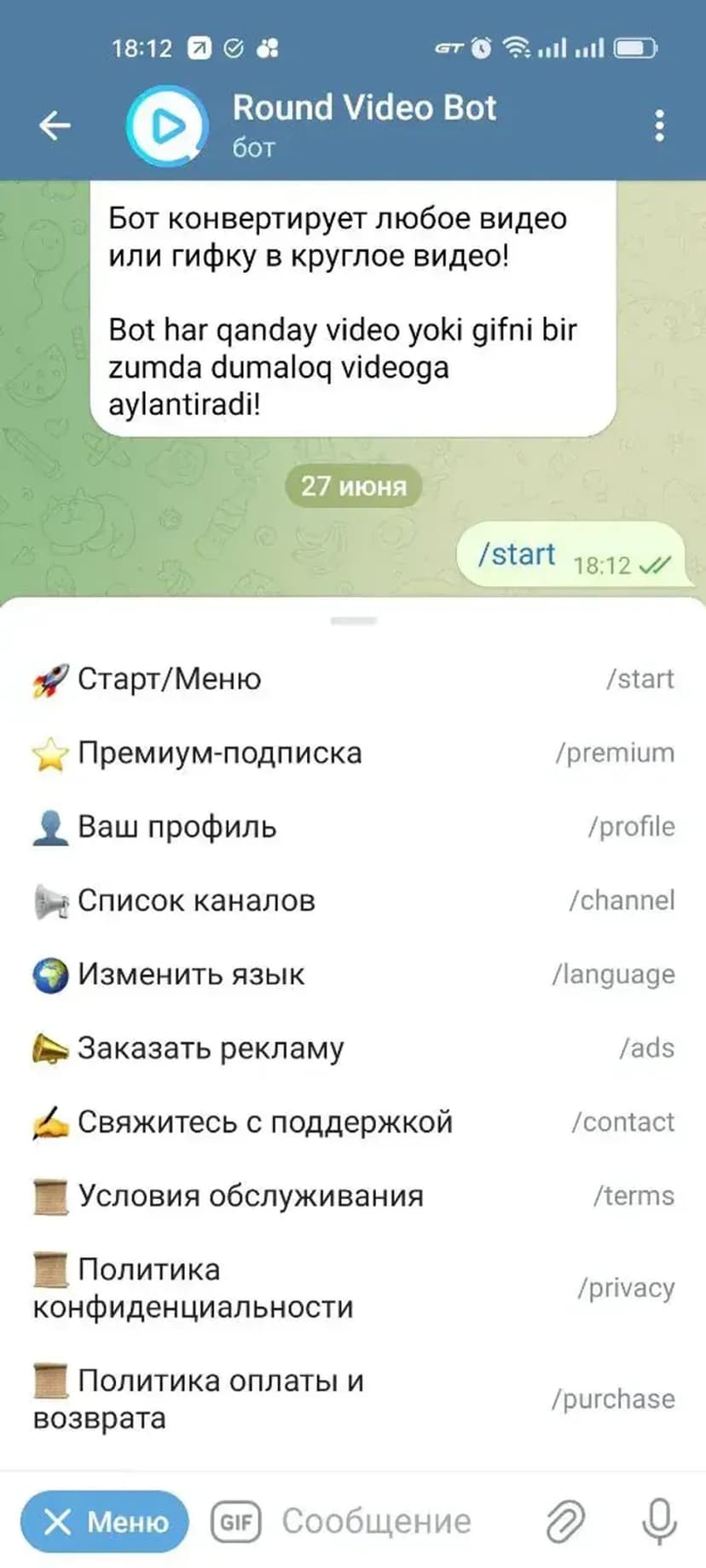 Round Video Bot преобразует любые видео и GIF в круглое видео — удобный формат для сторис, аватарок, стикеров и коротких видеосообщений в чате.
