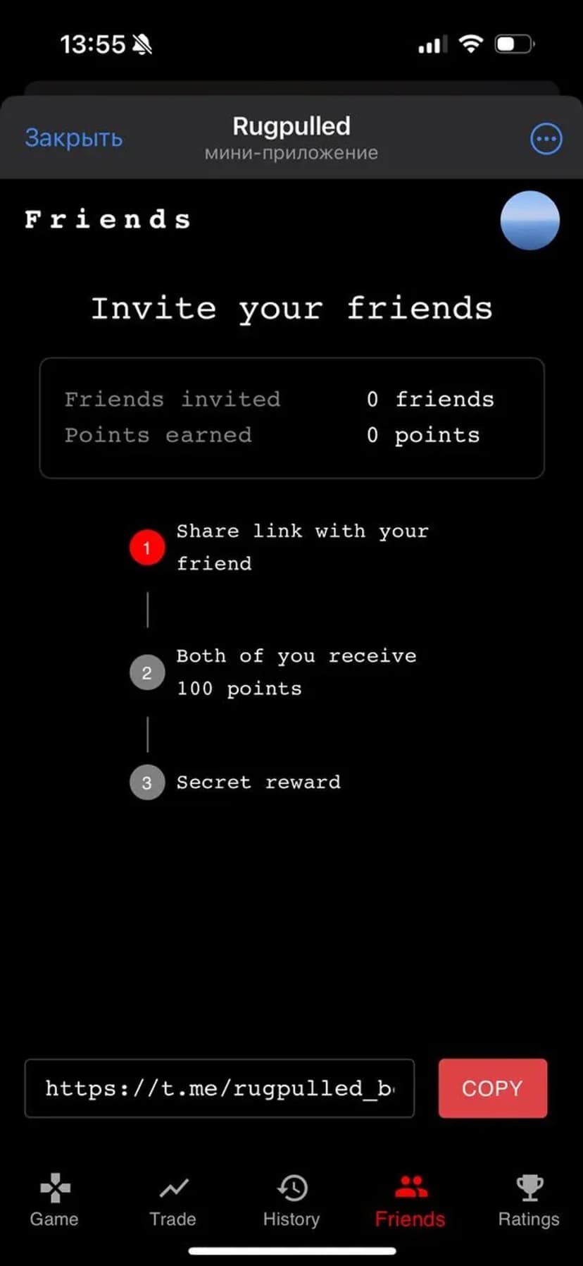 *Нажимая "Открыть в Telegram", вы перейдете к приложению Rugpulled в мессенджере Telegram