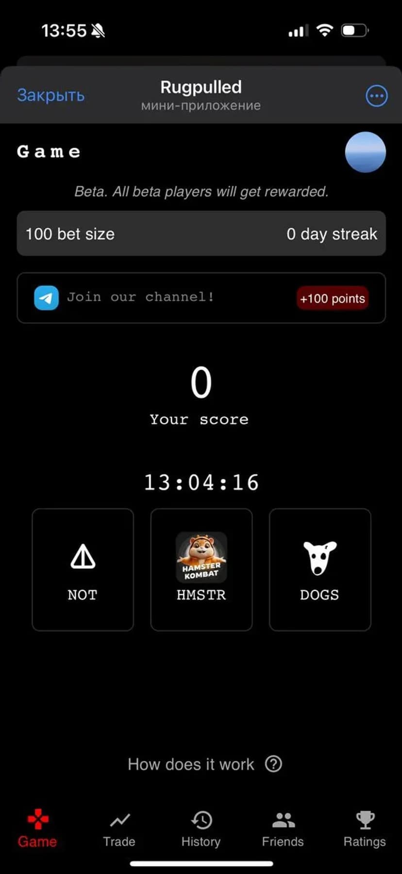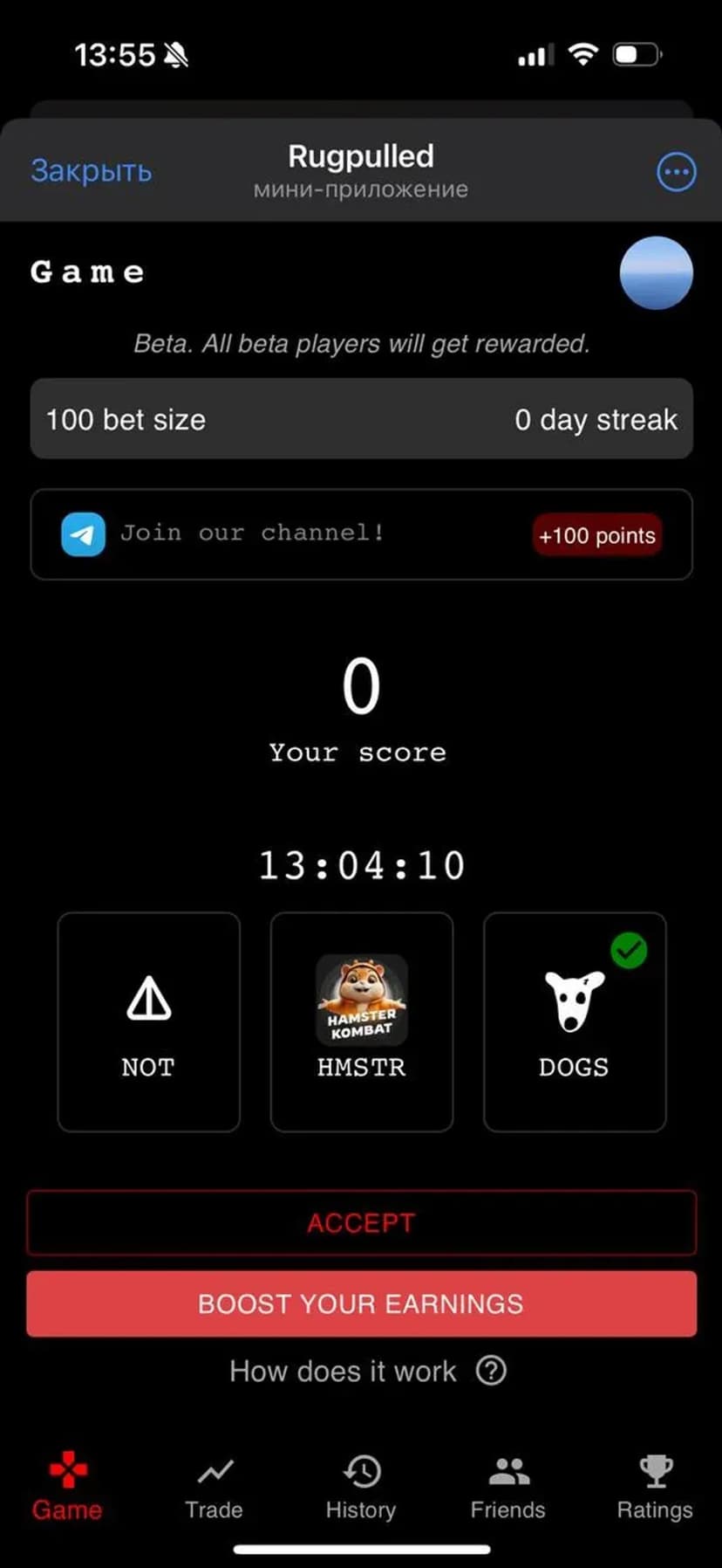 Rugpulled — игровой сервис в Telegram, где пользователи делают ставки в быстрых раундах и получают шанс на airdrop.