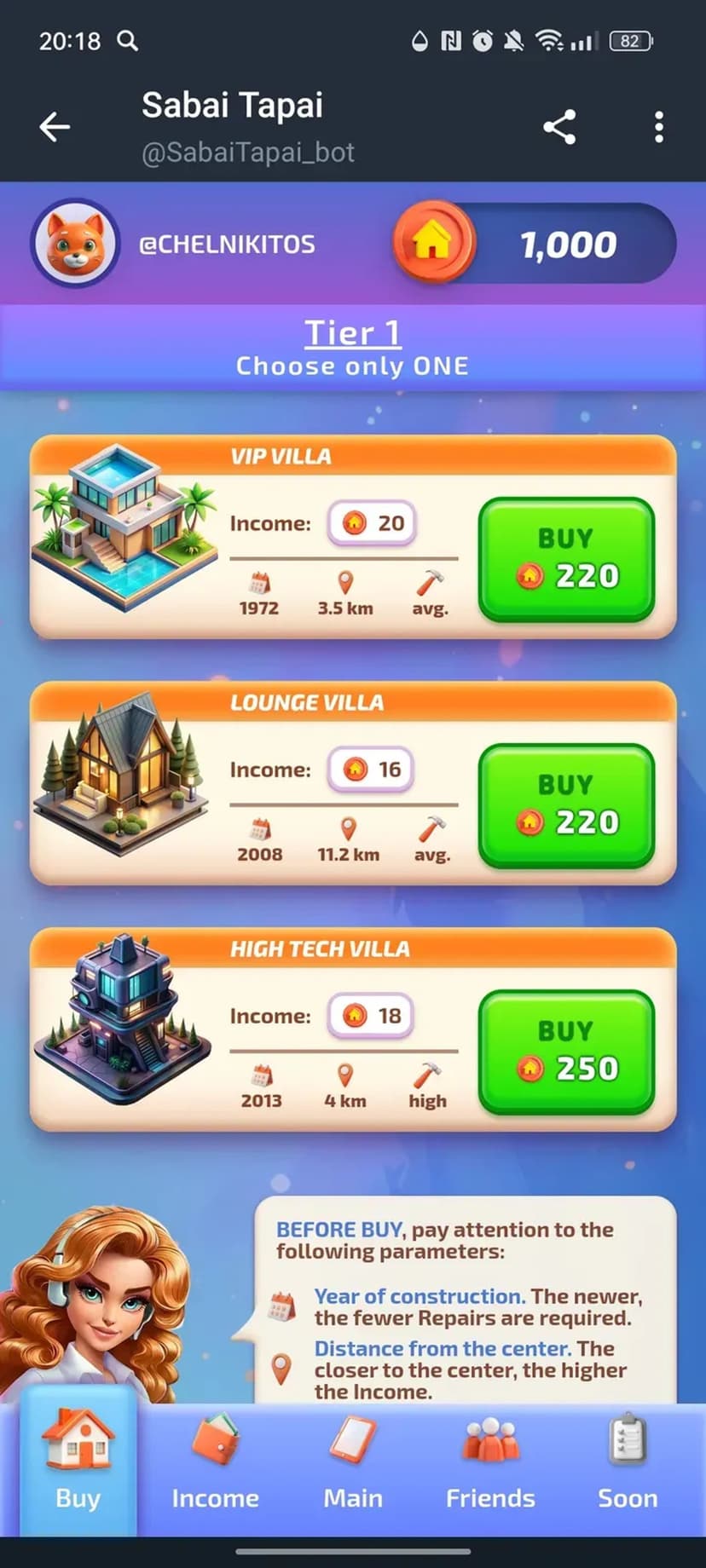 Sabai Tapai — мини-игра от Sabai Protocol, где кликер сочетается с экономическим симулятором: постройте и прокачивайте объекты недвижимости, развивая виртуальный город и получая доход через механики tap-to-earn.