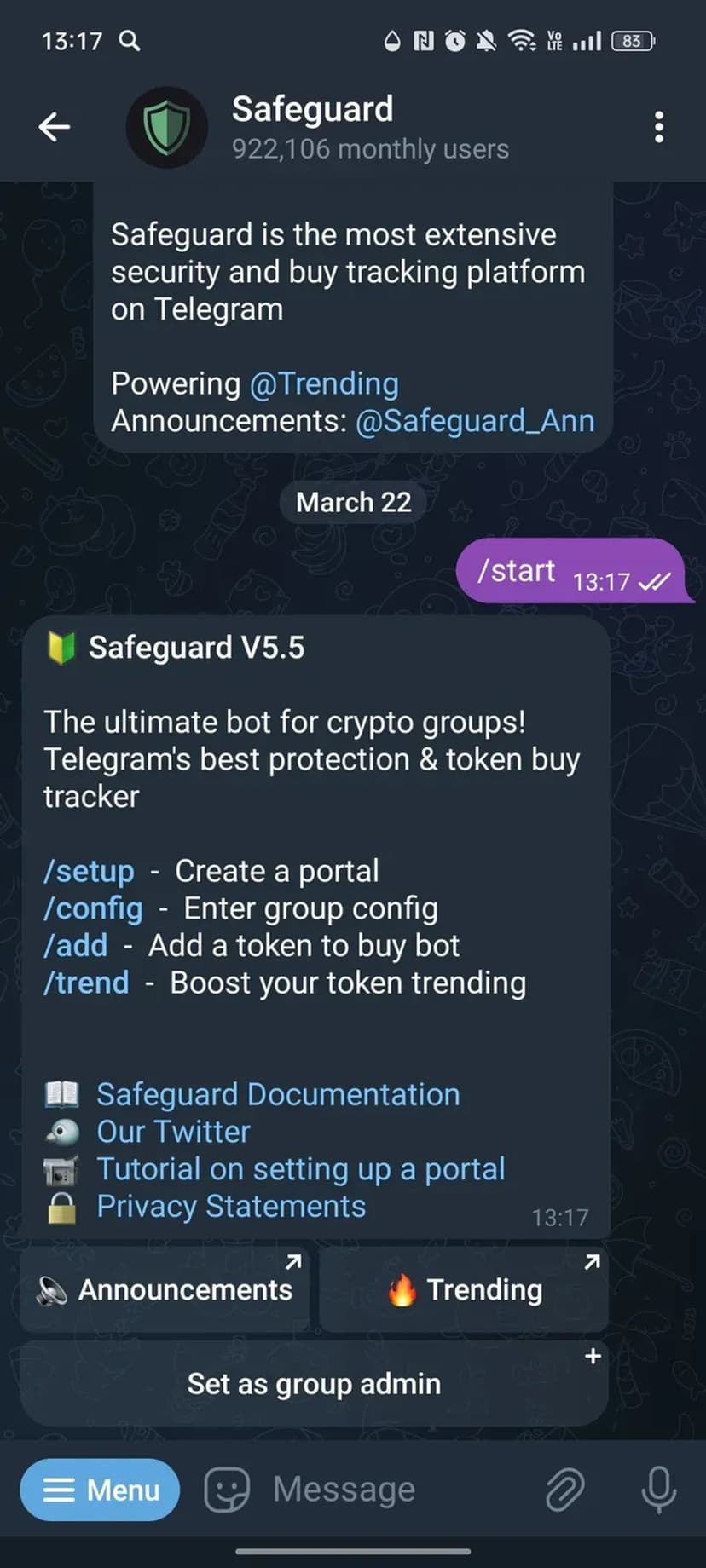 Safeguard обеспечивает мониторинг покупок токенов в реальном времени и повышает безопасность криптовалютных сообществ в Telegram.