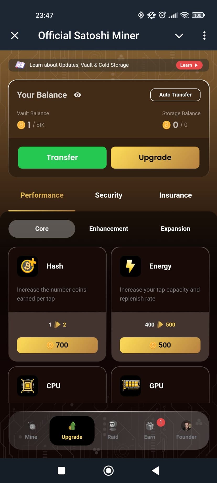 - Апгрейды, повышающие эффективность майнинга и скорость получения Satoshi Coins.