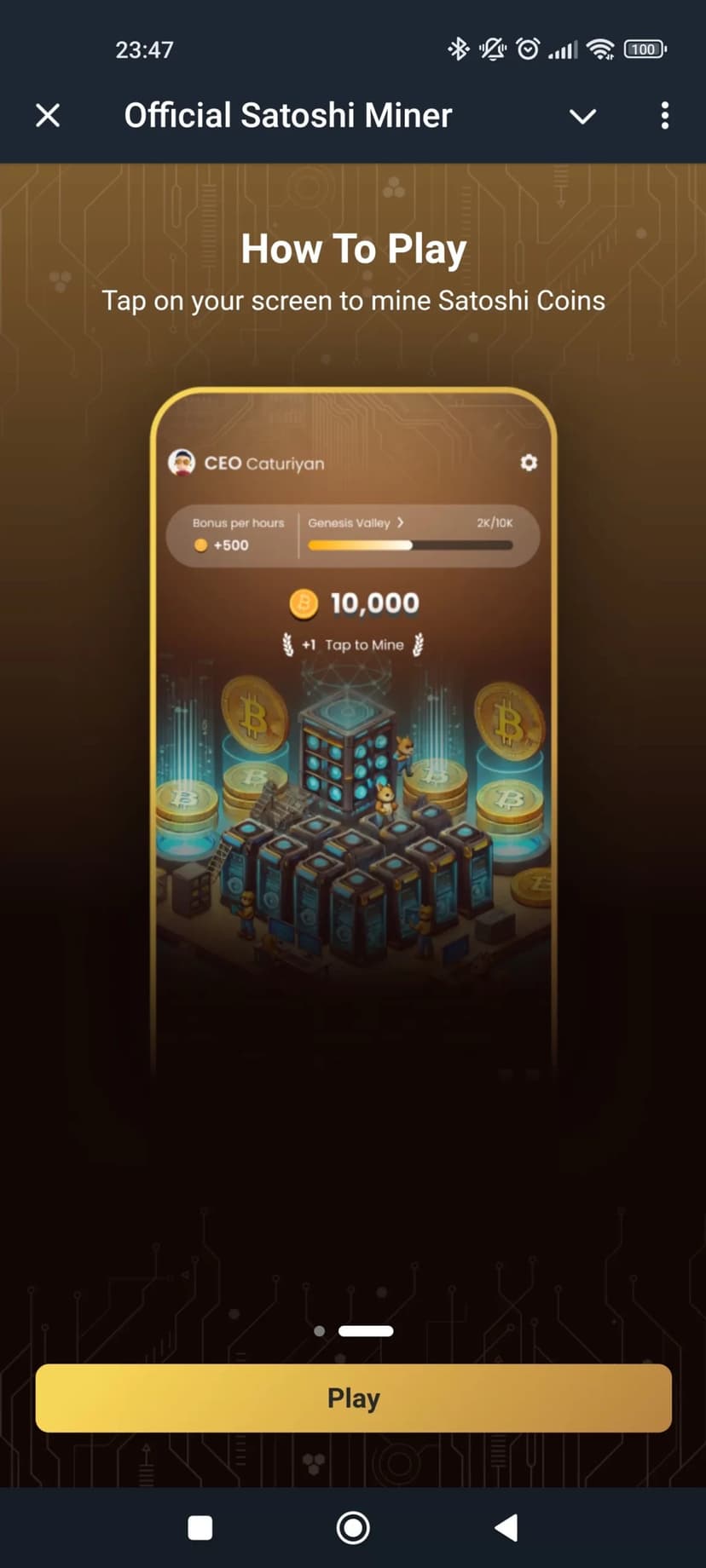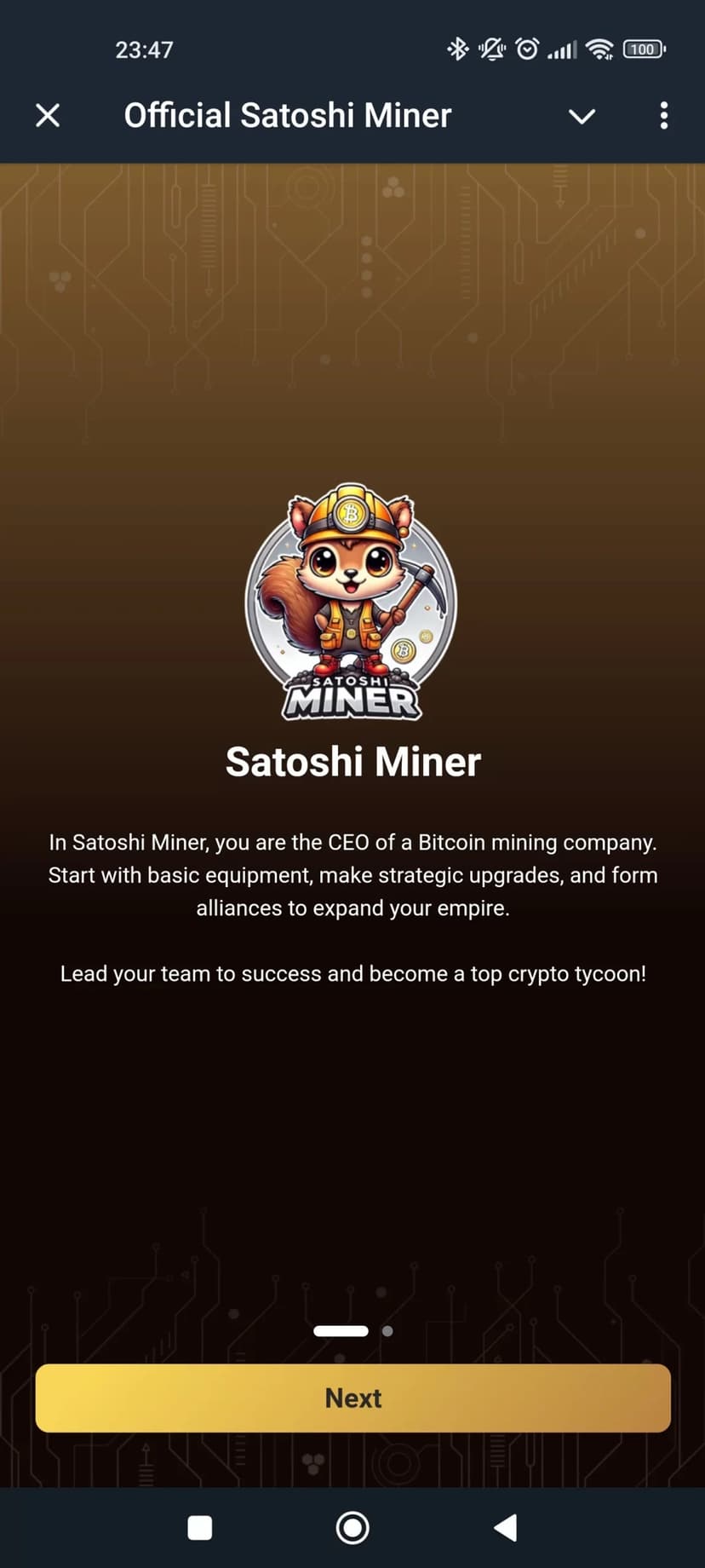 Satoshi Miner — кликер-симулятор майнинговой компании, где игроки зарабатывают внутриигровые Satoshi Coins, выполняя задания и взаимодействуя с ботом. Игра сочетает простую механику тапов с элементами прогрессии и криптотехнологий.