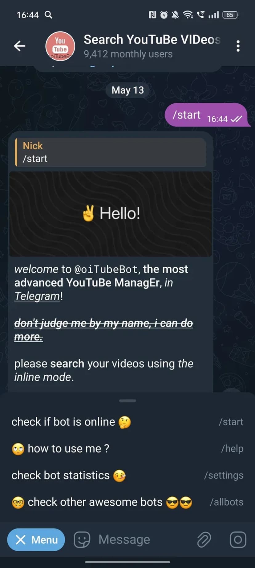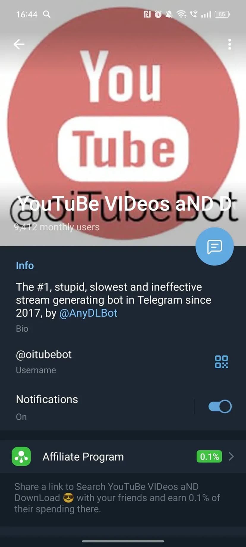 ΠΠΎΠΈΡΠΊ ΠΈ ΡΠΊΠ°ΡΠΈΠ²Π°Π½ΠΈΠ΅ Π²ΠΈΠ΄Π΅ΠΎ ΠΈ Π°ΡΠ΄ΠΈΠΎ Ρ YouTube Π²Π½ΡΡΡΠΈ Telegram-Π±ΠΎΡΠ° Π±Π΅Π· ΡΠ΅Π³ΠΈΡΡΡΠ°ΡΠΈΠΈ