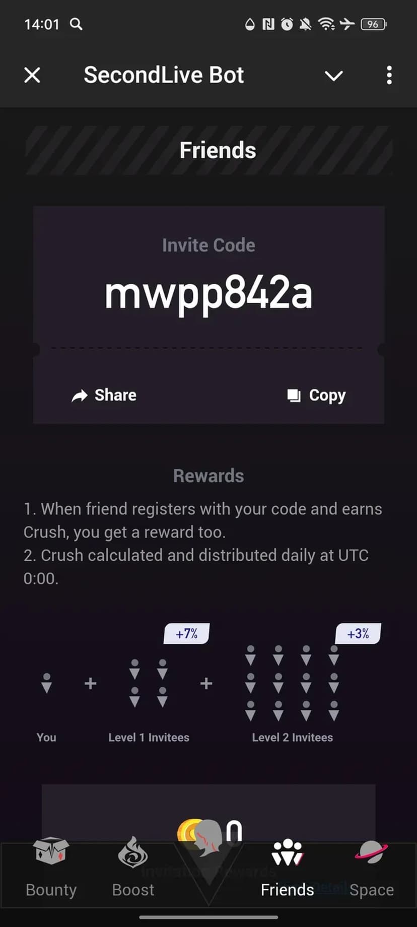 Совет новичкам: подпишитесь на предлагаемые каналы и чаты, регулярно выполняйте ежедневные задания и приглашайте друзей, чтобы стабильно наращивать баланс $Crush.