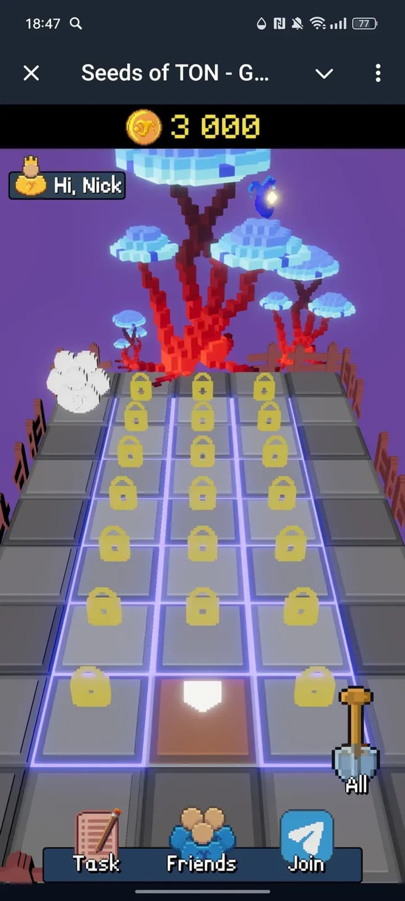 Seeds of TON — мини-игра с пошаговой (incremental) механикой: создавайте и развивайте цифровую усадьбу, сажайте семена, собирайте урожай и накапливайте очки для увеличения дохода. Вход выполняется через стандартную авторизацию Telegram, отдельная регистрация не требуется.