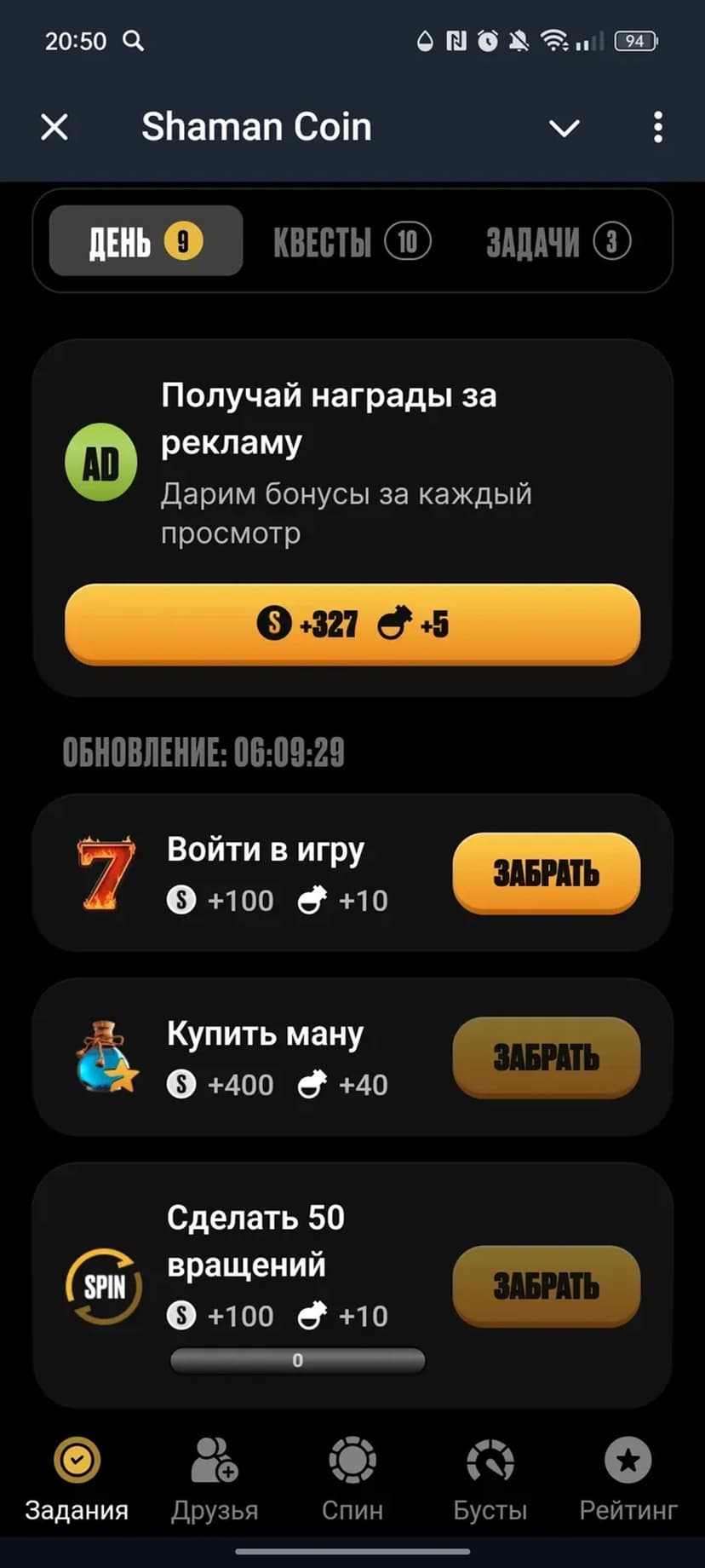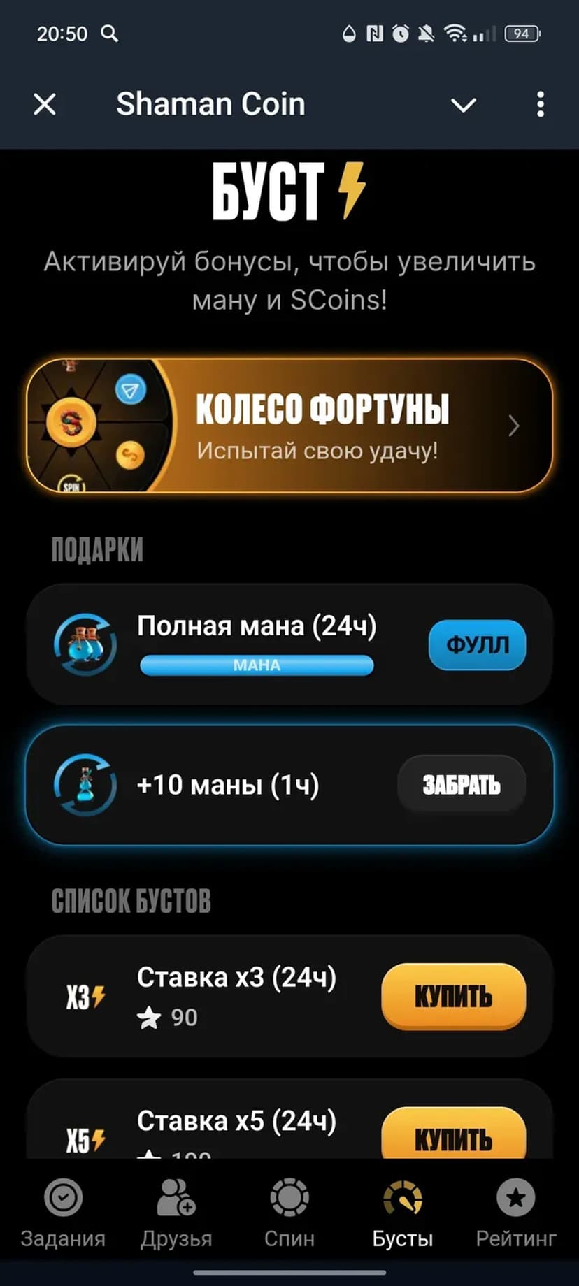 - Дополнительные задания: выполнять активности (например, приглашение друзей или участие в канале) для получения маны и дополнительных попыток.