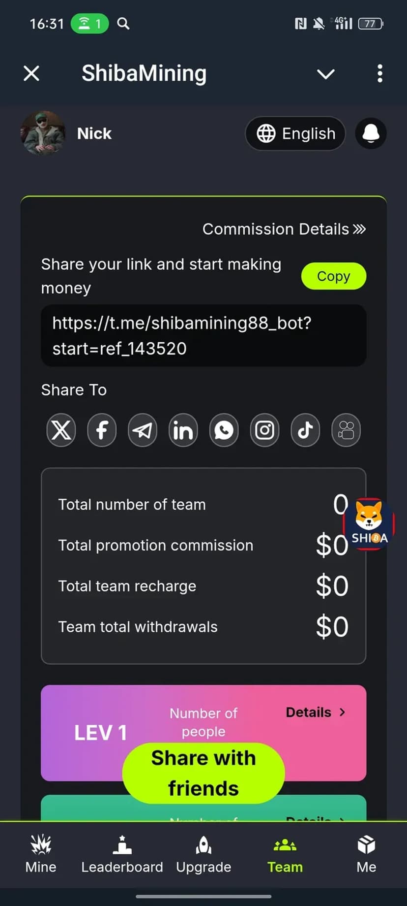 *Нажимая "Открыть в Telegram", вы перейдете к приложению ShibaMining в мессенджере Telegram