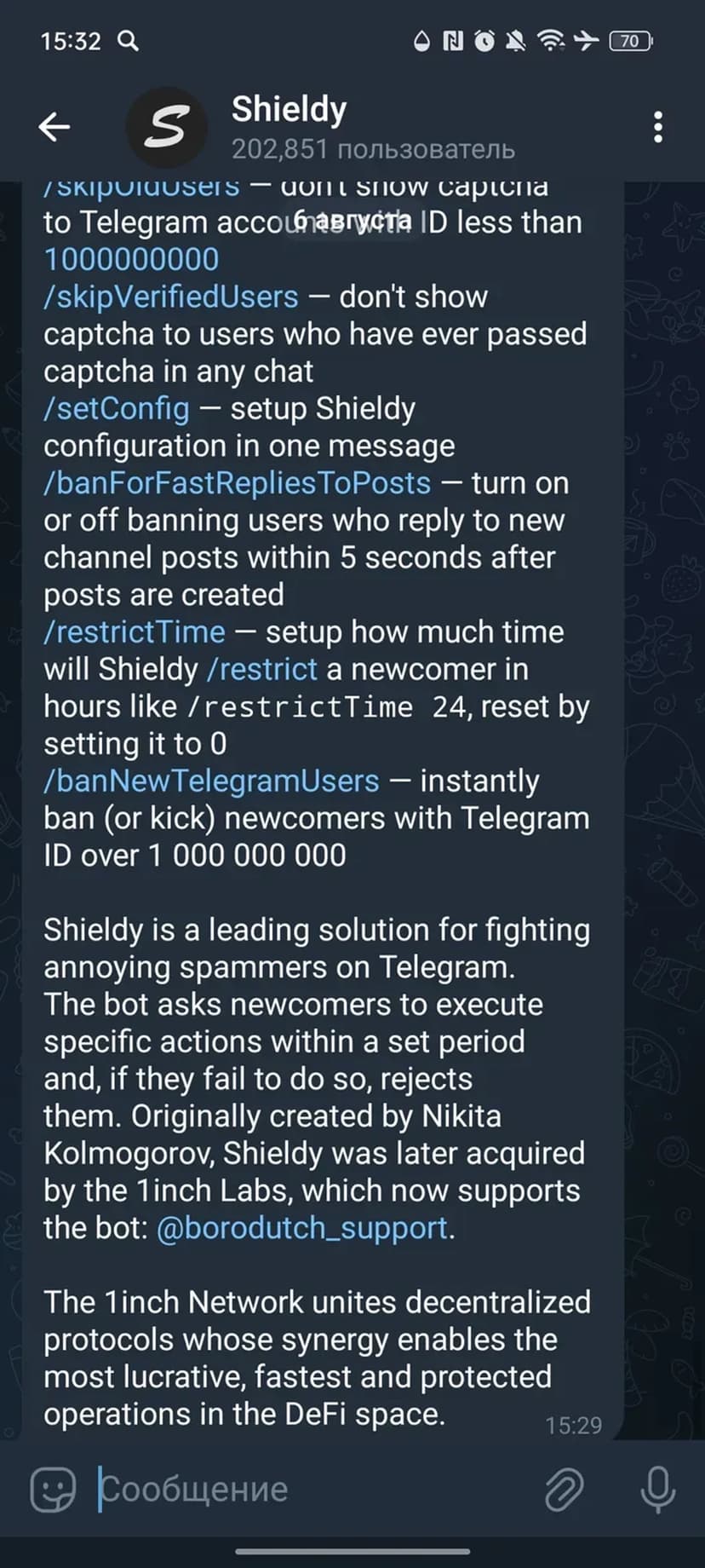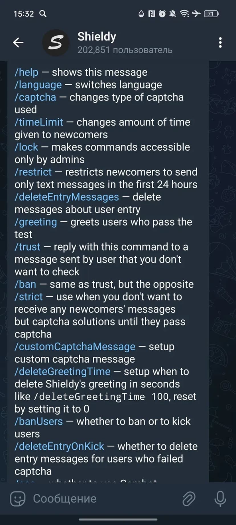 Shieldy обеспечивает автоматическую защиту групп от спама и ботов посредством проверки новых участников.