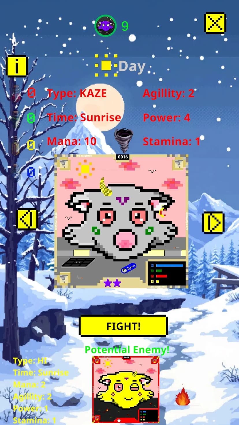 Shinami — NFT-баттлы в Telegram: игроки сражаются уникальными питомцами, относящимися к четырём стихиям — Огонь, Вода, Ветер и Природа. У каждого NFT заданы ключевые параметры: сила, ловкость, выносливость и мана, которые определяют эффективность в бою.