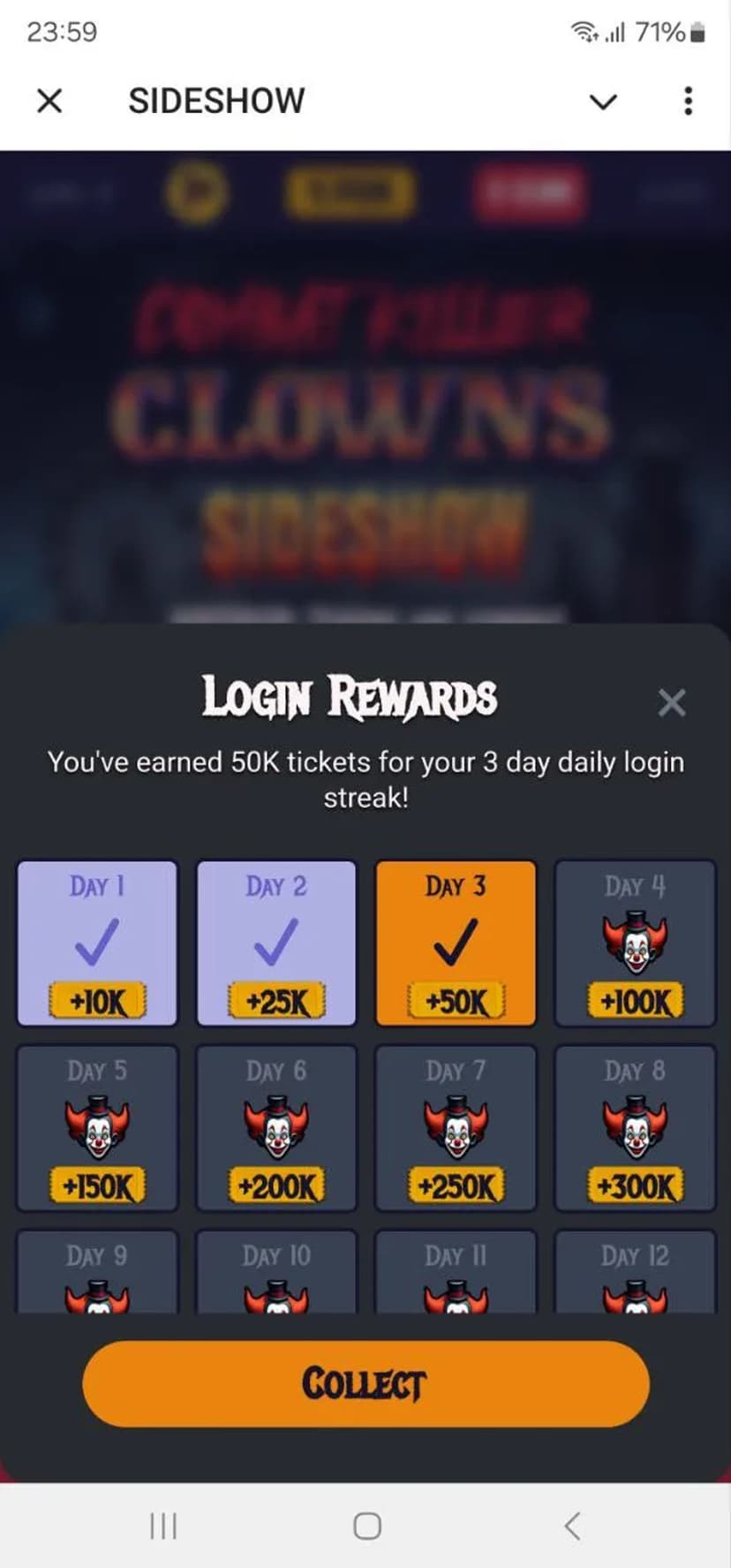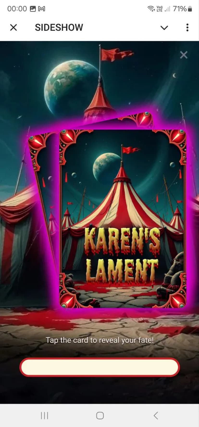 SIDESHOW — мрачный карнавал в формате мини‑игр: пользователи проходят тематические испытания, получают предсказания и собирают виртуальные билеты за выполнение заданий.