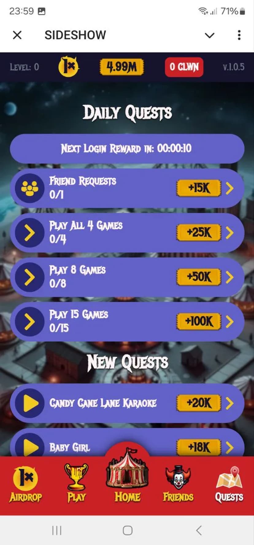 - Социальные функции: приглашения друзей через промокоды для совместного прохождения квестов и повышения позиций в рейтинге.