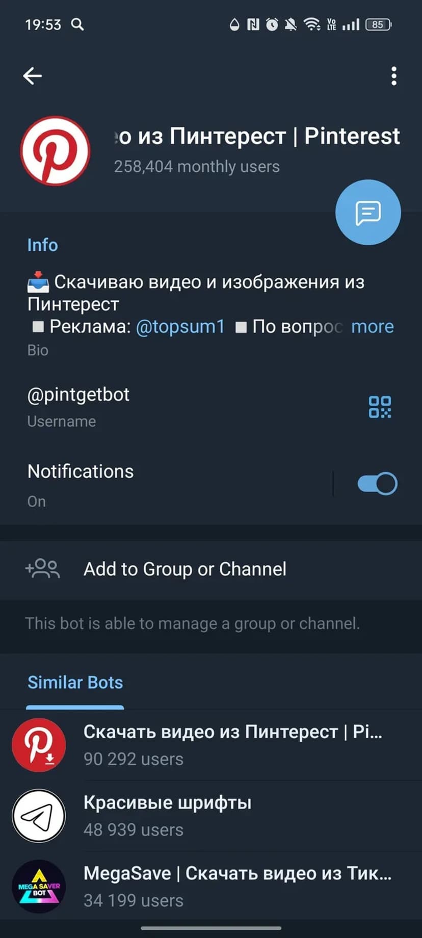 *Нажимая "Открыть в Telegram", вы перейдете к приложению Скачать видео из Пинтерест | Pinterest в мессенджере Telegram