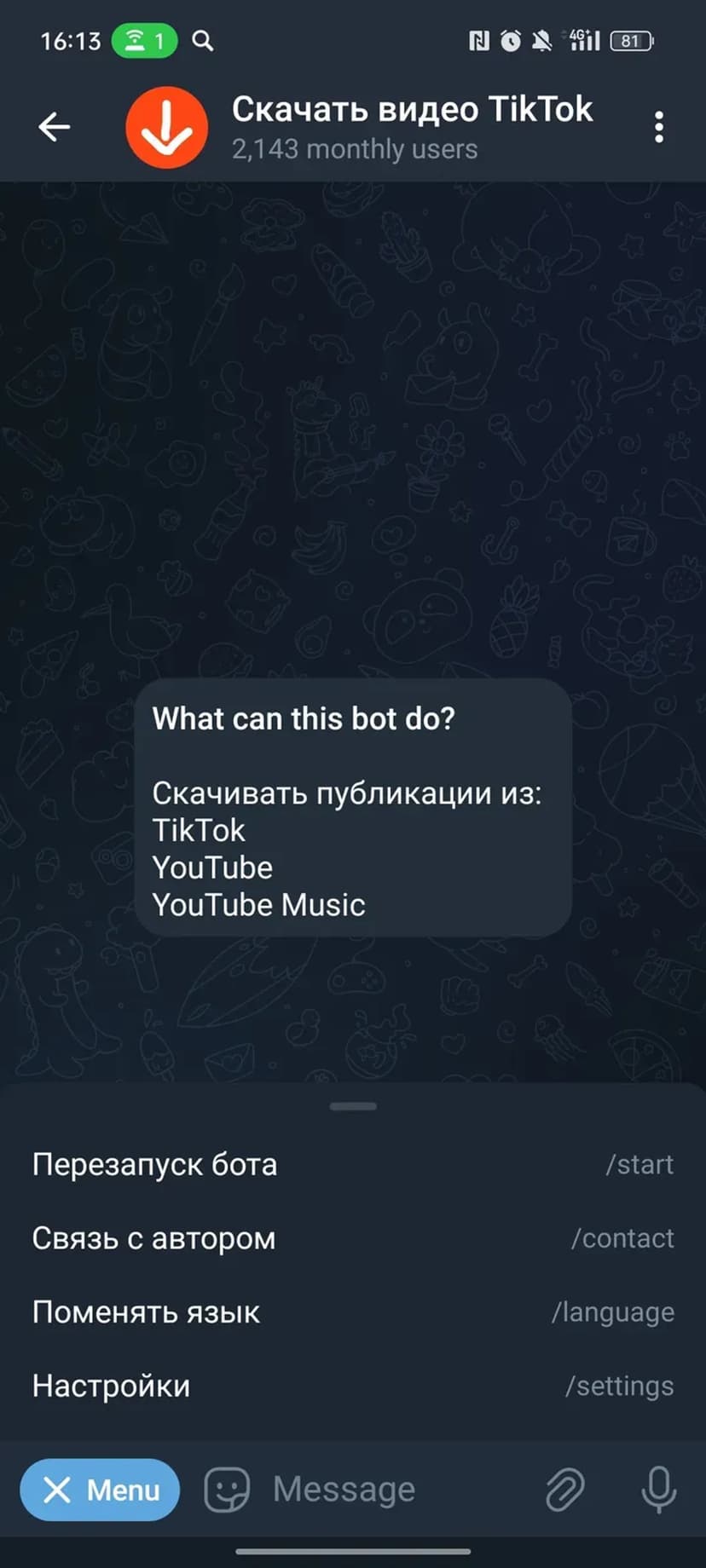 Скачивание видео и аудиодорожек из TikTok без водяных знаков быстро и прямо в чат